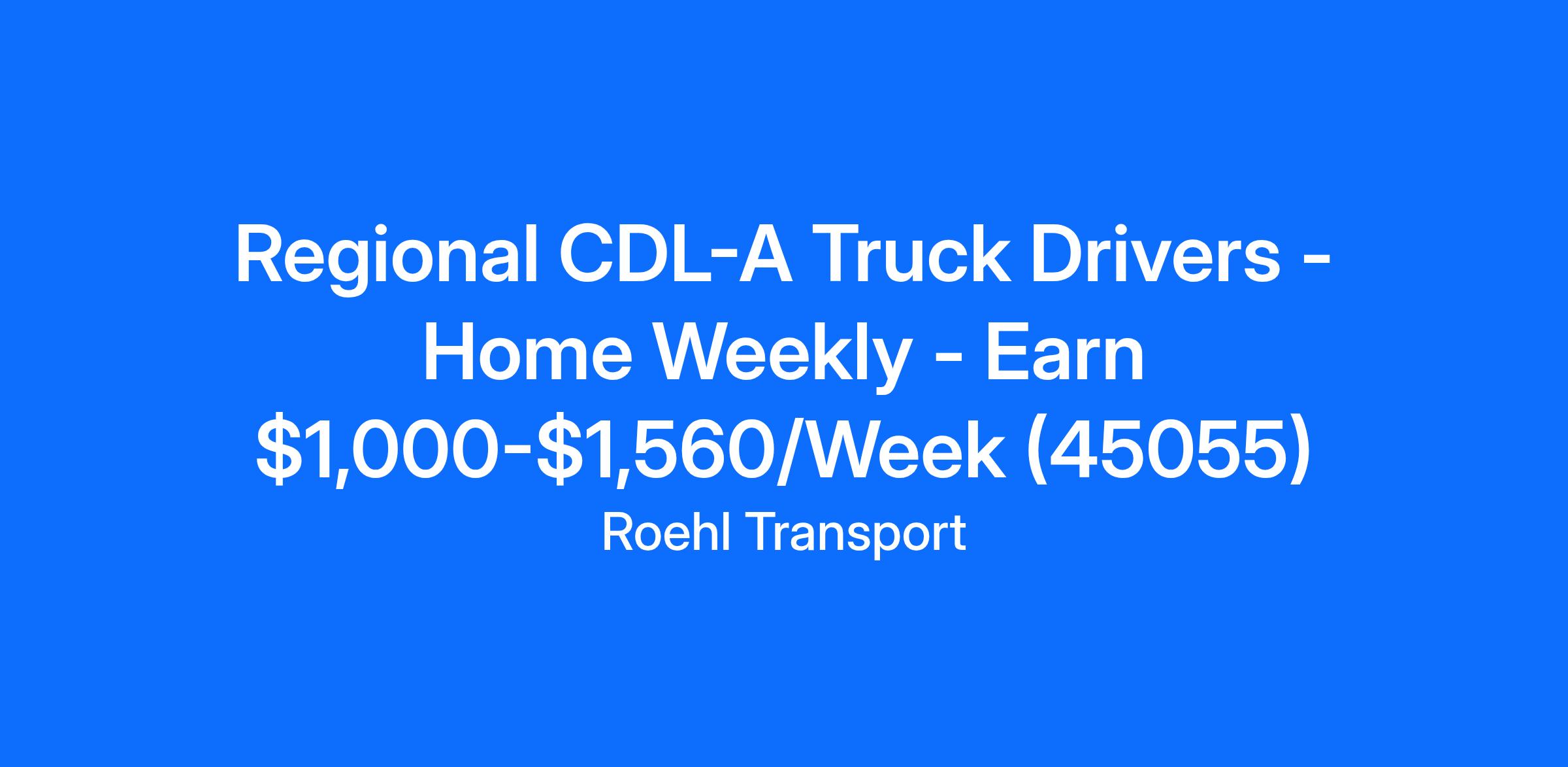 Regional CDL-A Truck Drivers - Home Weekly - Earn $1,000-$1,560/Week (45055)