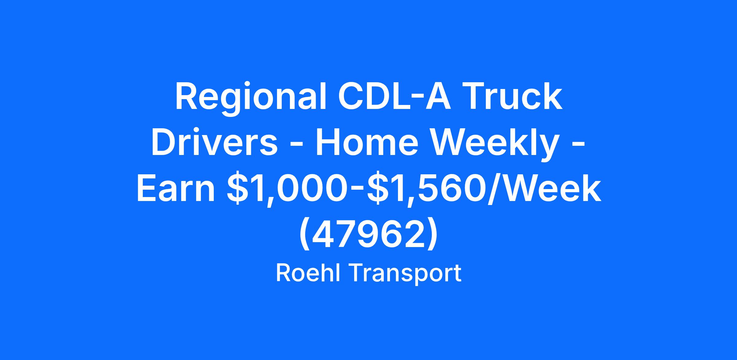 Regional CDL-A Truck Drivers - Home Weekly - Earn $1,000-$1,560/Week (47962)