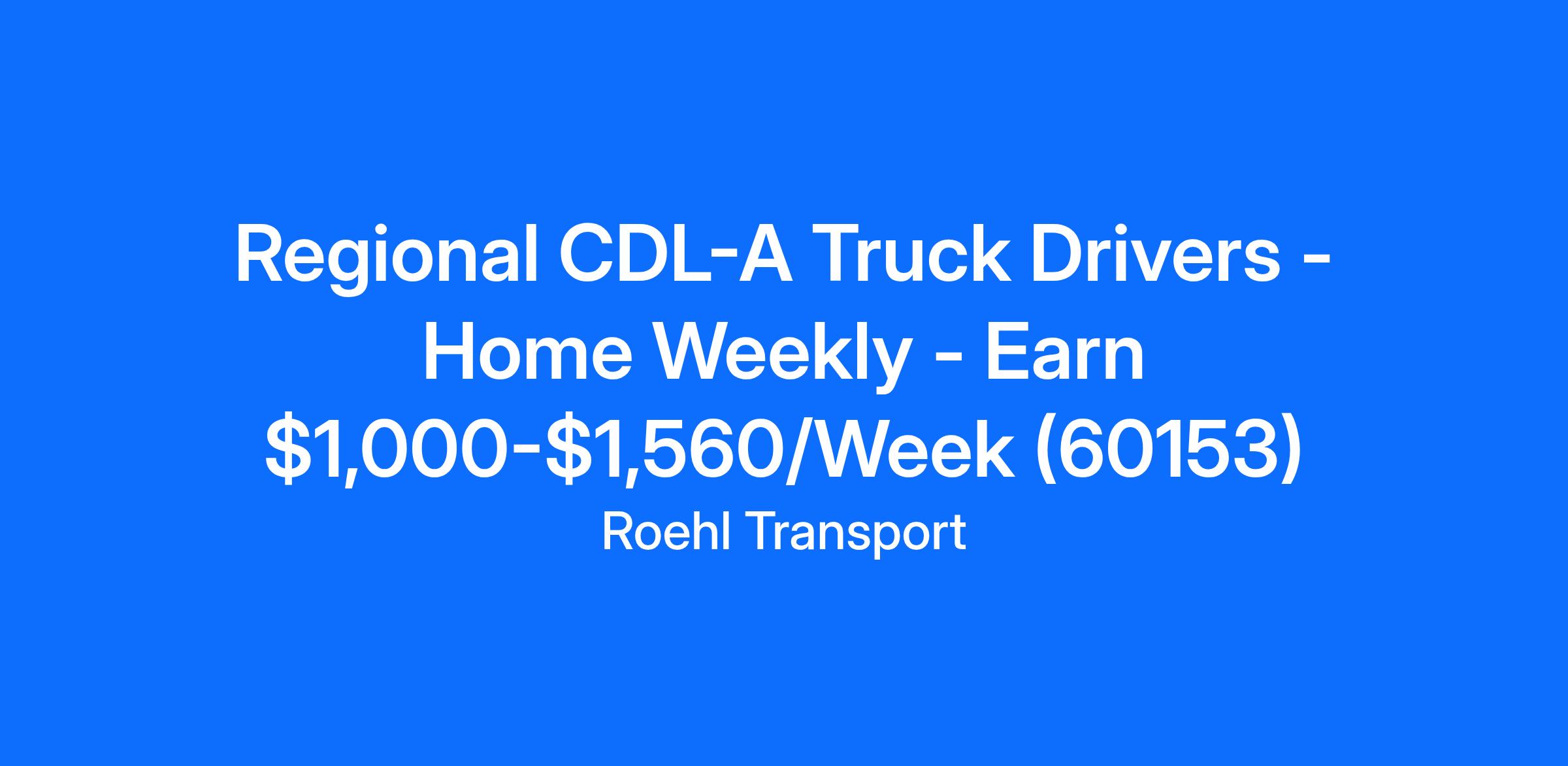 Regional CDL-A Truck Drivers - Home Weekly - Earn $1,000-$1,560/Week (60153)