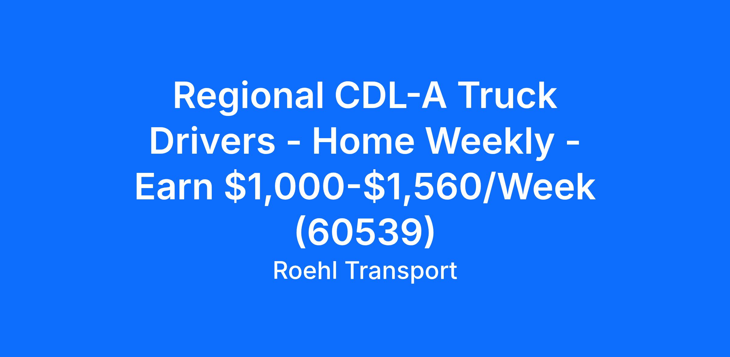 Regional CDL-A Truck Drivers - Home Weekly - Earn $1,000-$1,560/Week (60539)