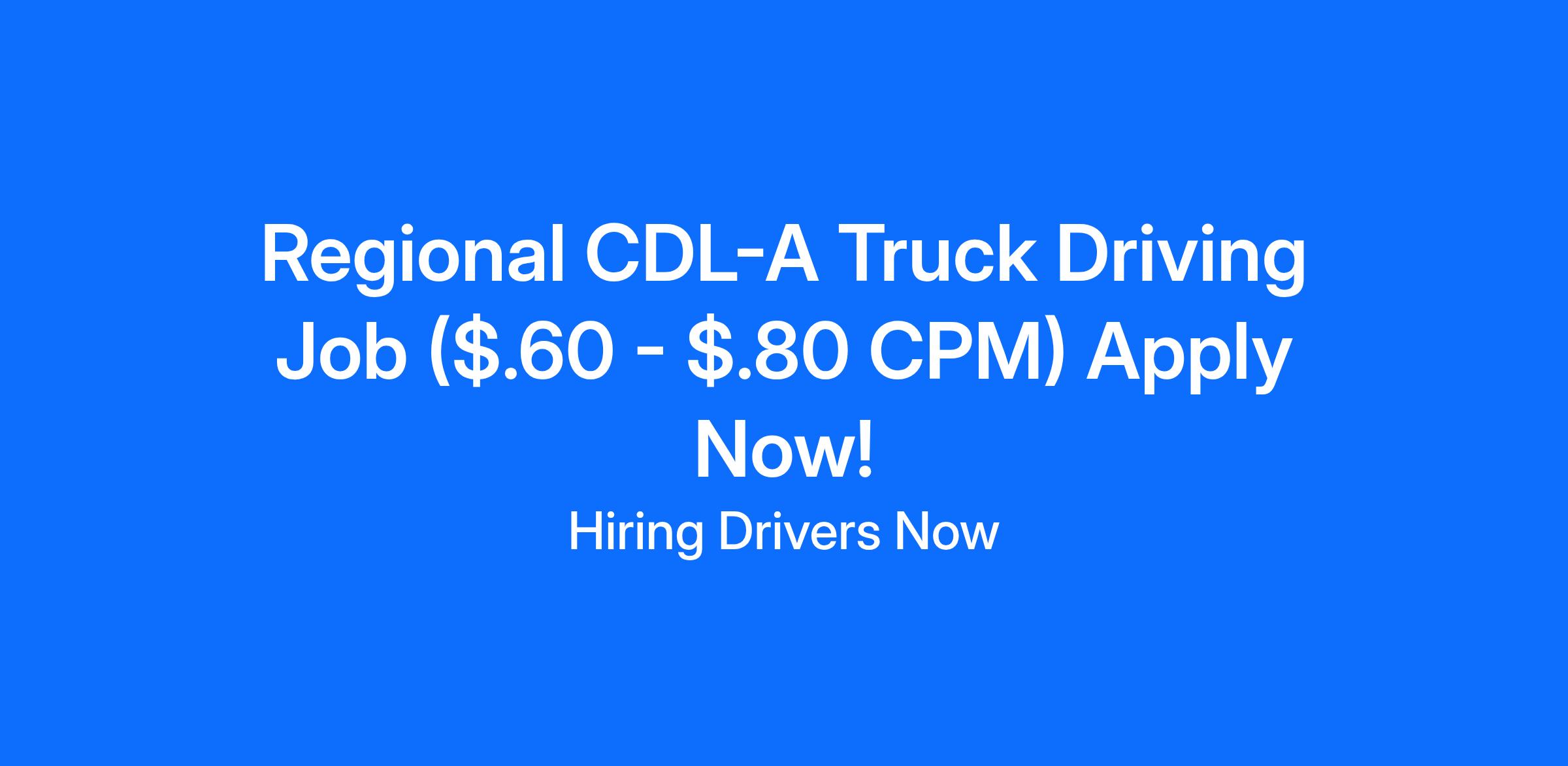 Regional CDL-A Truck Driving Job ($.60 - $.80 CPM) Apply Now!