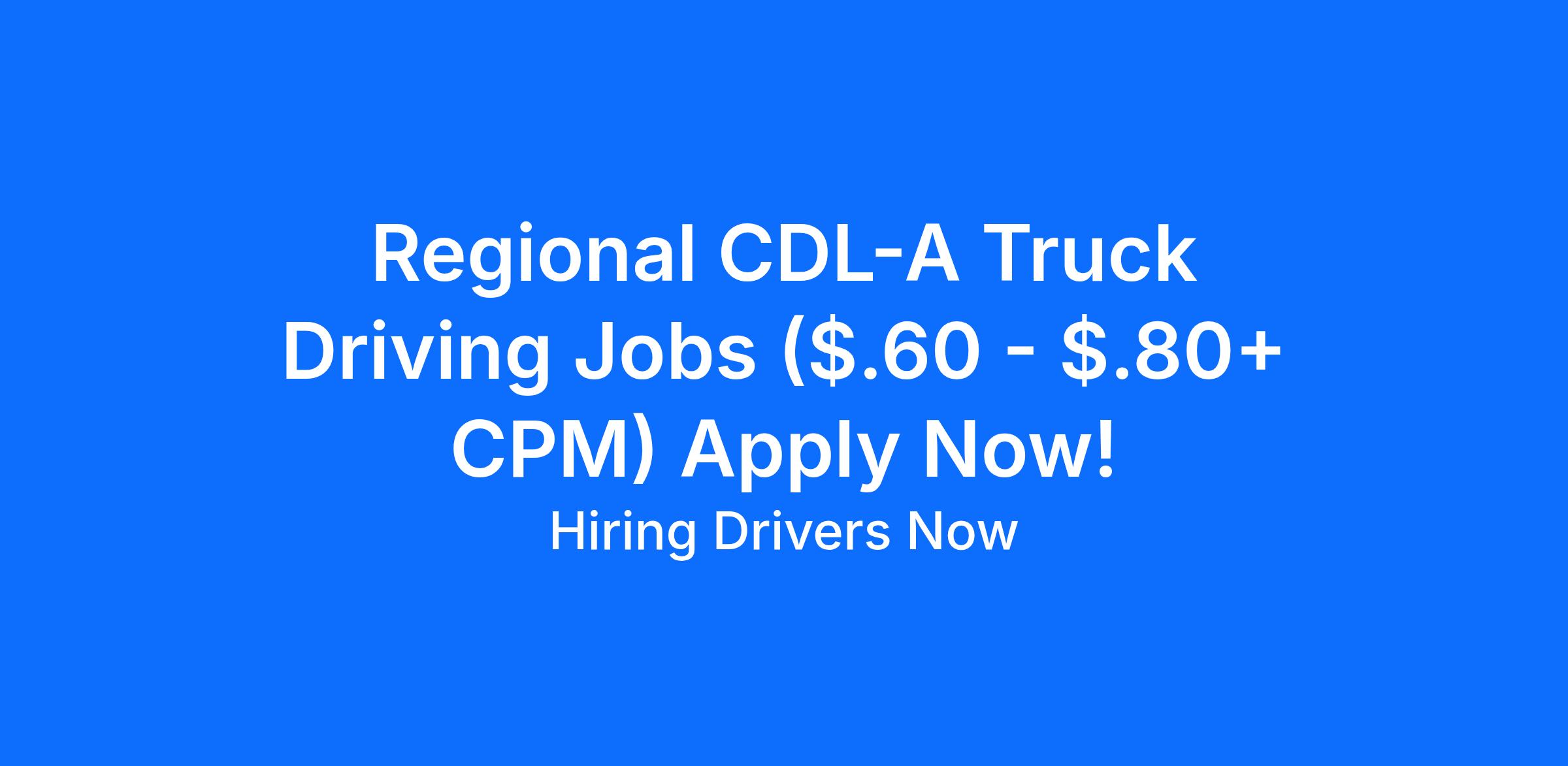 Now Hiring Regional CDL-A Truck Drivers!