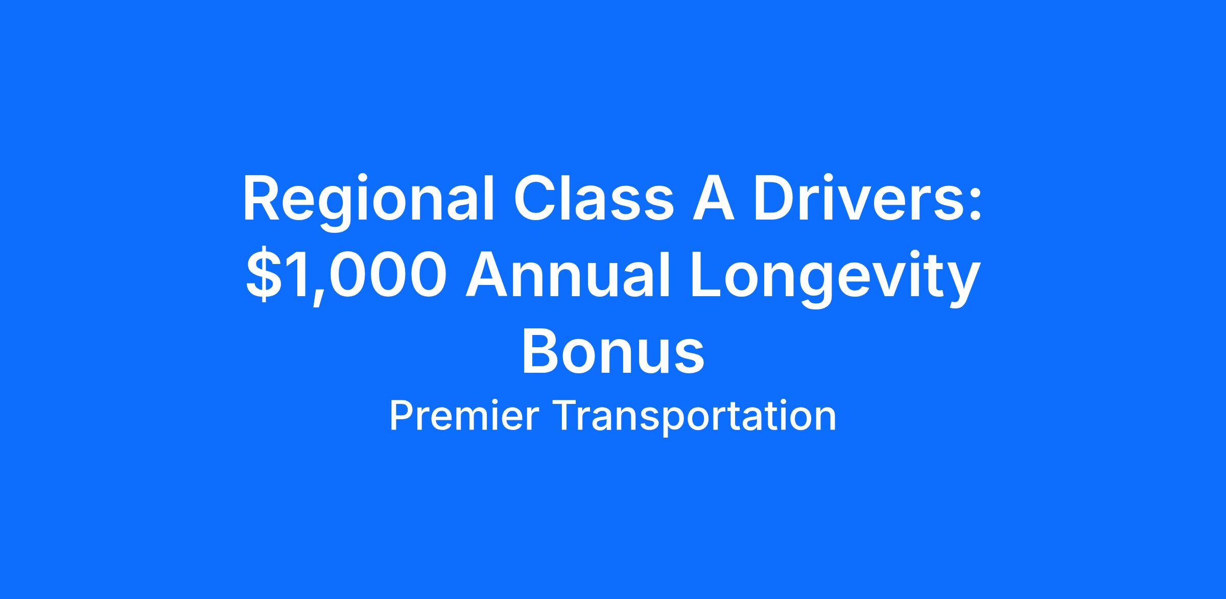 Regional Class A Drivers: $1,000 Annual Longevity Bonus