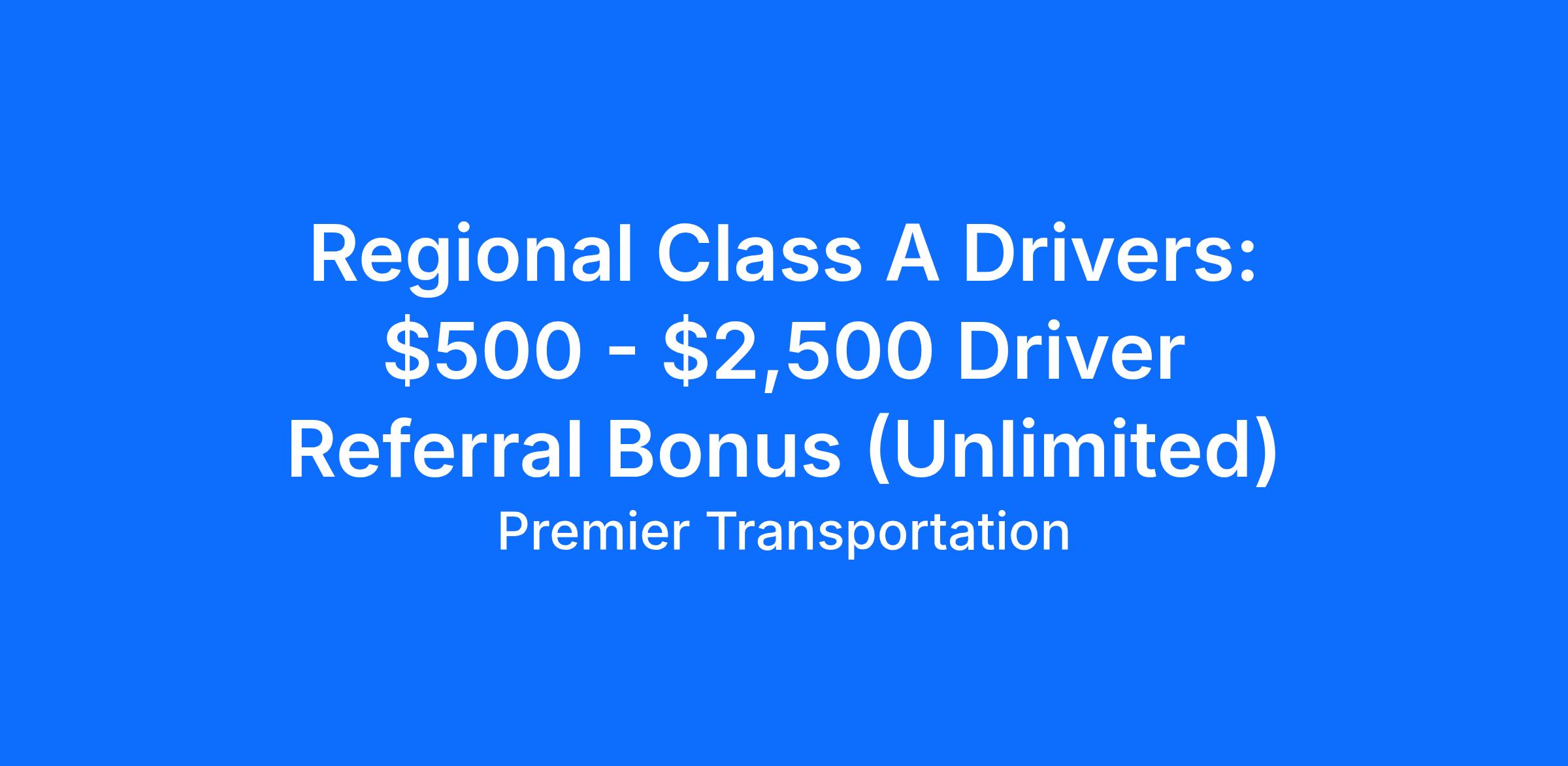 Regional Class A Drivers: $500 - $2,500 Driver Referral Bonus (Unlimited)