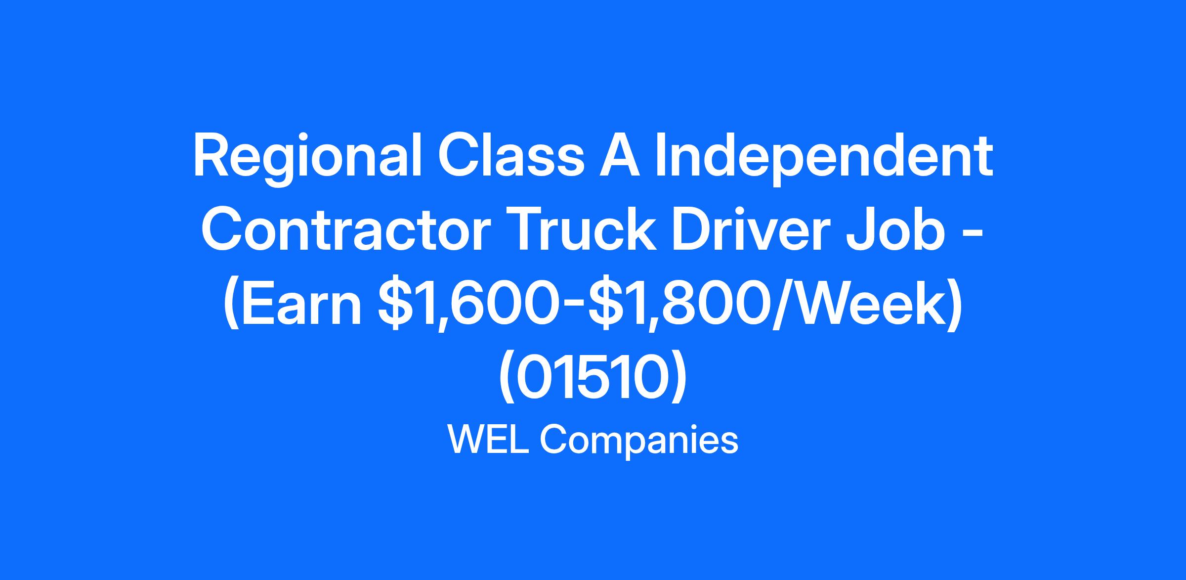 Regional Class A Independent Contractor Truck Driver Job - (Earn $1,600-$1,800/Week) (01510)