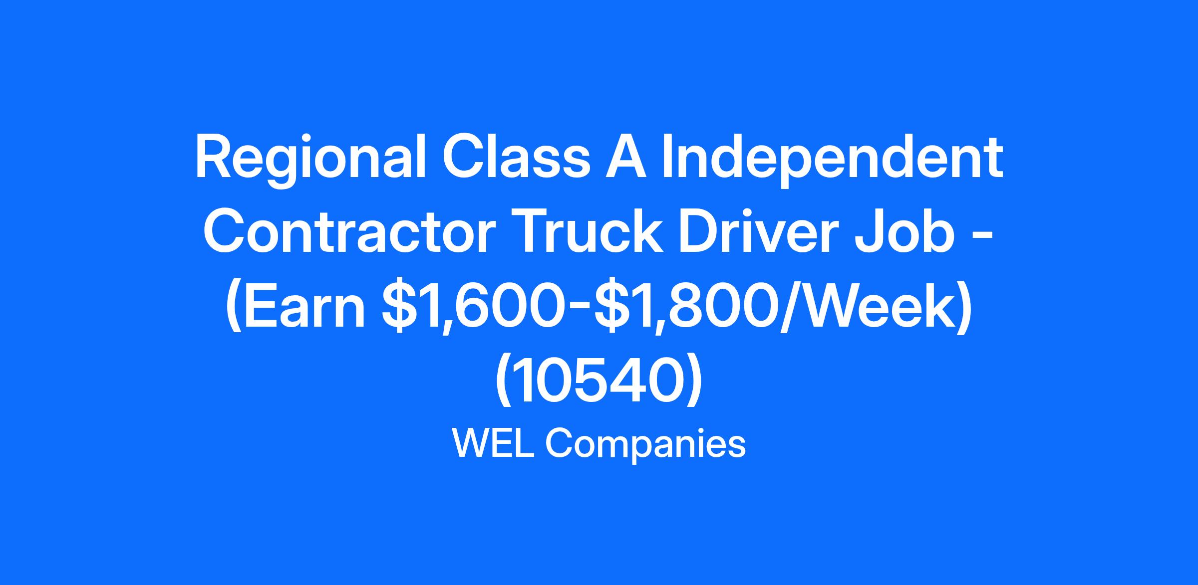 Regional Class A Independent Contractor Truck Driver Job - (Earn $1,600-$1,800/Week) (10540)