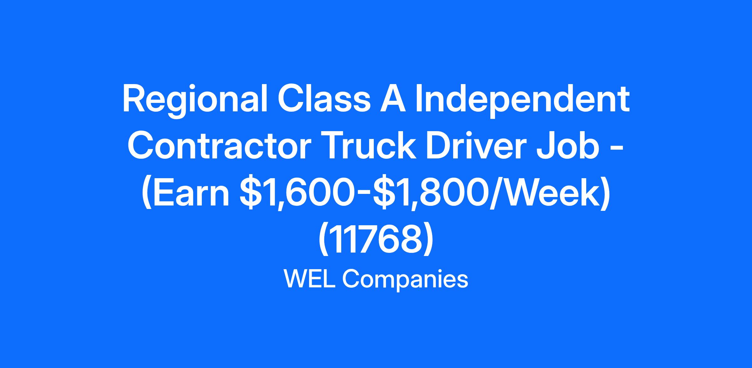Regional Class A Independent Contractor Truck Driver Job - (Earn $1,600-$1,800/Week) (11768)