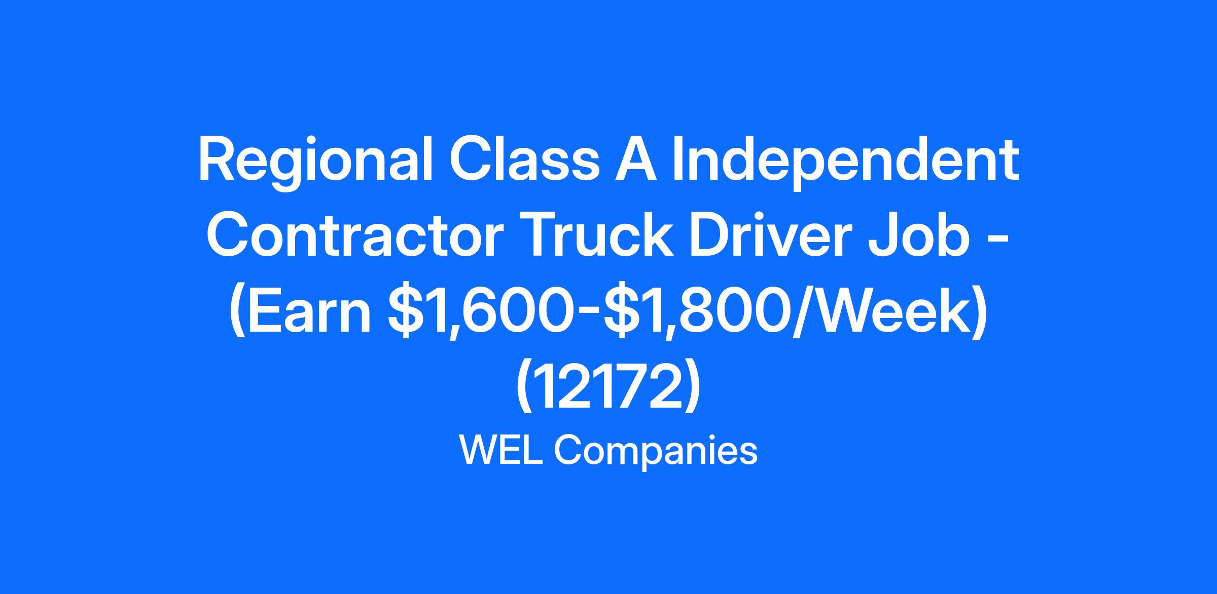 Regional Class A Independent Contractor Truck Driver Job - (Earn $1,600-$1,800/Week) (12172)