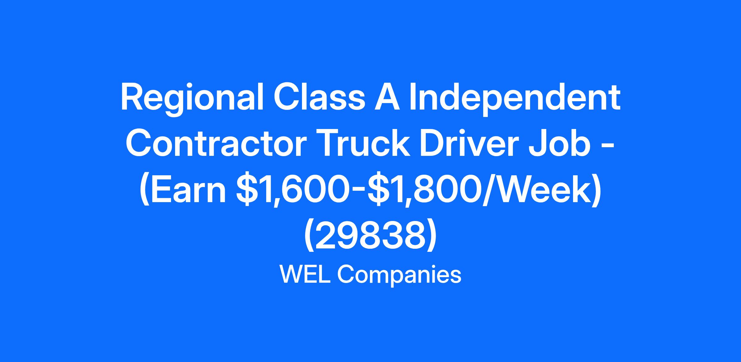 Regional Class A Independent Contractor Truck Driver Job - (Earn $1,600-$1,800/Week) (29838)