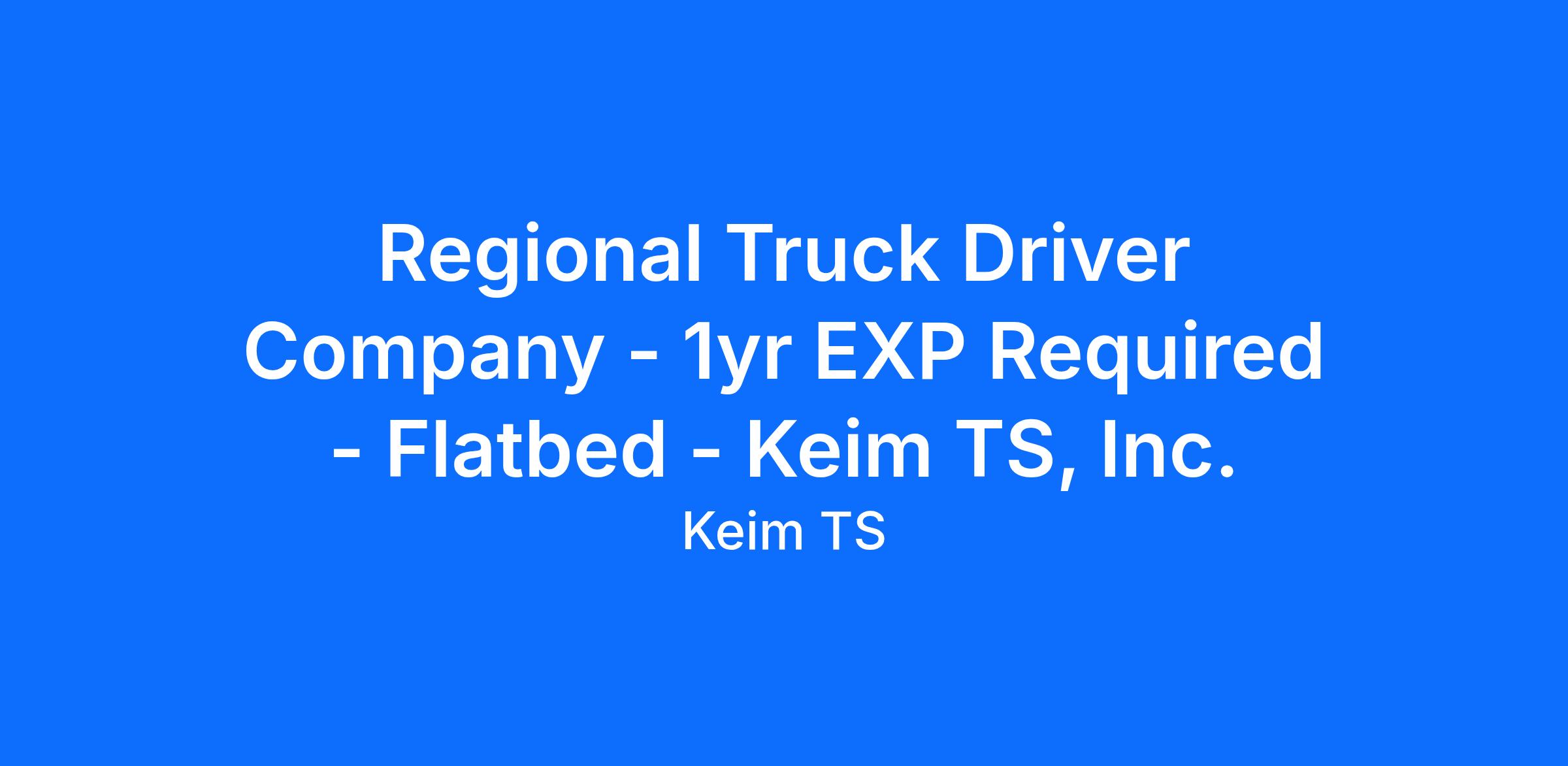 Benefits for Company Driver Trucking Jobs at Keim TS include: