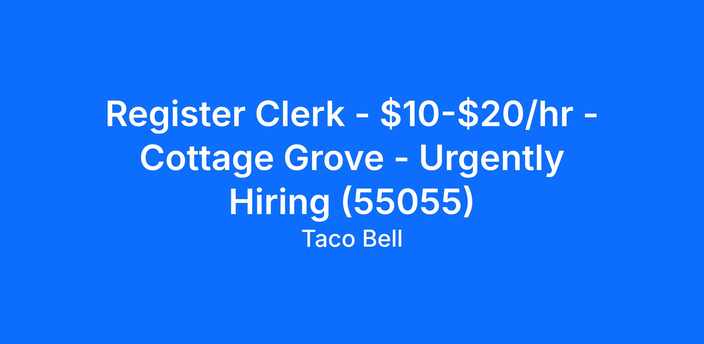 Taco Bell - Cottage Grove is looking for a full time or part time Register Clerk to join our team in Cottage Grove, MN. As a Register Clerk, you'll manage a high volume of transactions while providing a seamless experience for customers. You will use cash registers, POS terminals, and other related equipment to conduct monetary transactions with customers. The ideal candidate is dependable, excellent under pressure, and displays exceptional customer service to ensure the guests will return. Showing up on time is a must for this role. You are one of the main connections between Taco Bell - Cottage Grove and the guest, so a positive attitude is super important. In addition to greeting guests, you will answer their questions as needed and ensure quality on all orders. Money handling skills are important because you will be making sure the register is balanced before and after your shift. Being a team player is key to being great as a register clerk at Taco Bell - Cottage Grove.