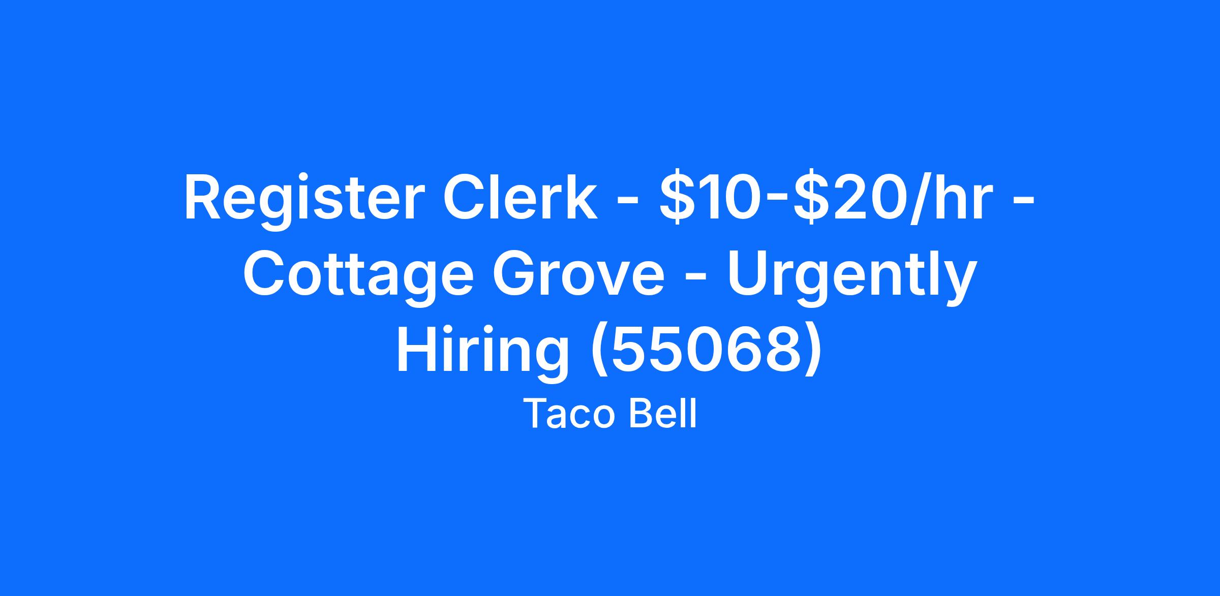 Register Clerk - $10-$20/hr - Cottage Grove - Urgently Hiring (55068)