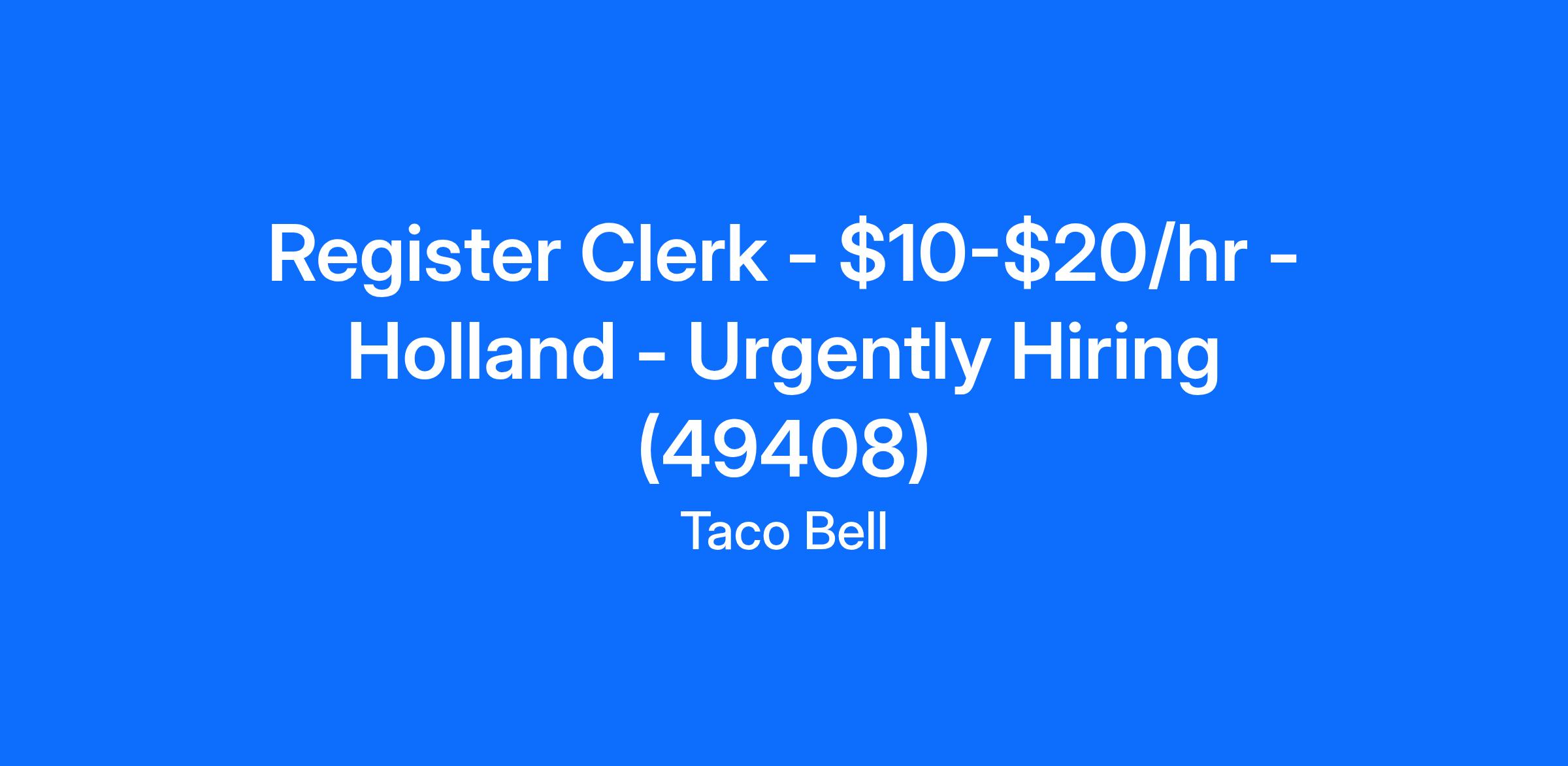 Register Clerk - $10-$20/hr - Holland - Urgently Hiring (49408)