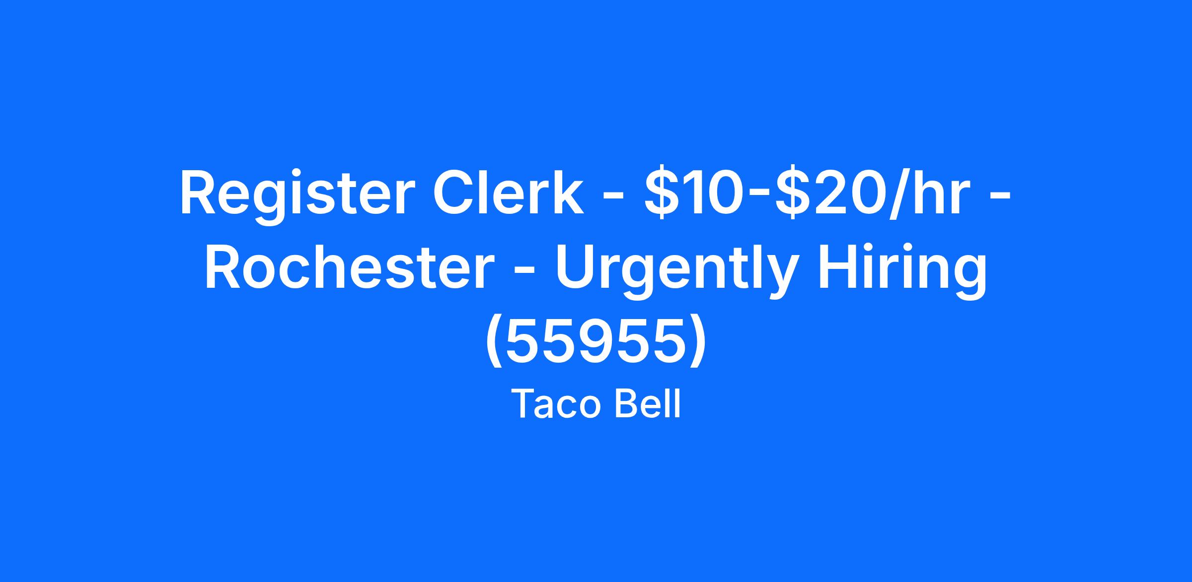 Register Clerk - $10-$20/hr - Rochester - Urgently Hiring (55955)