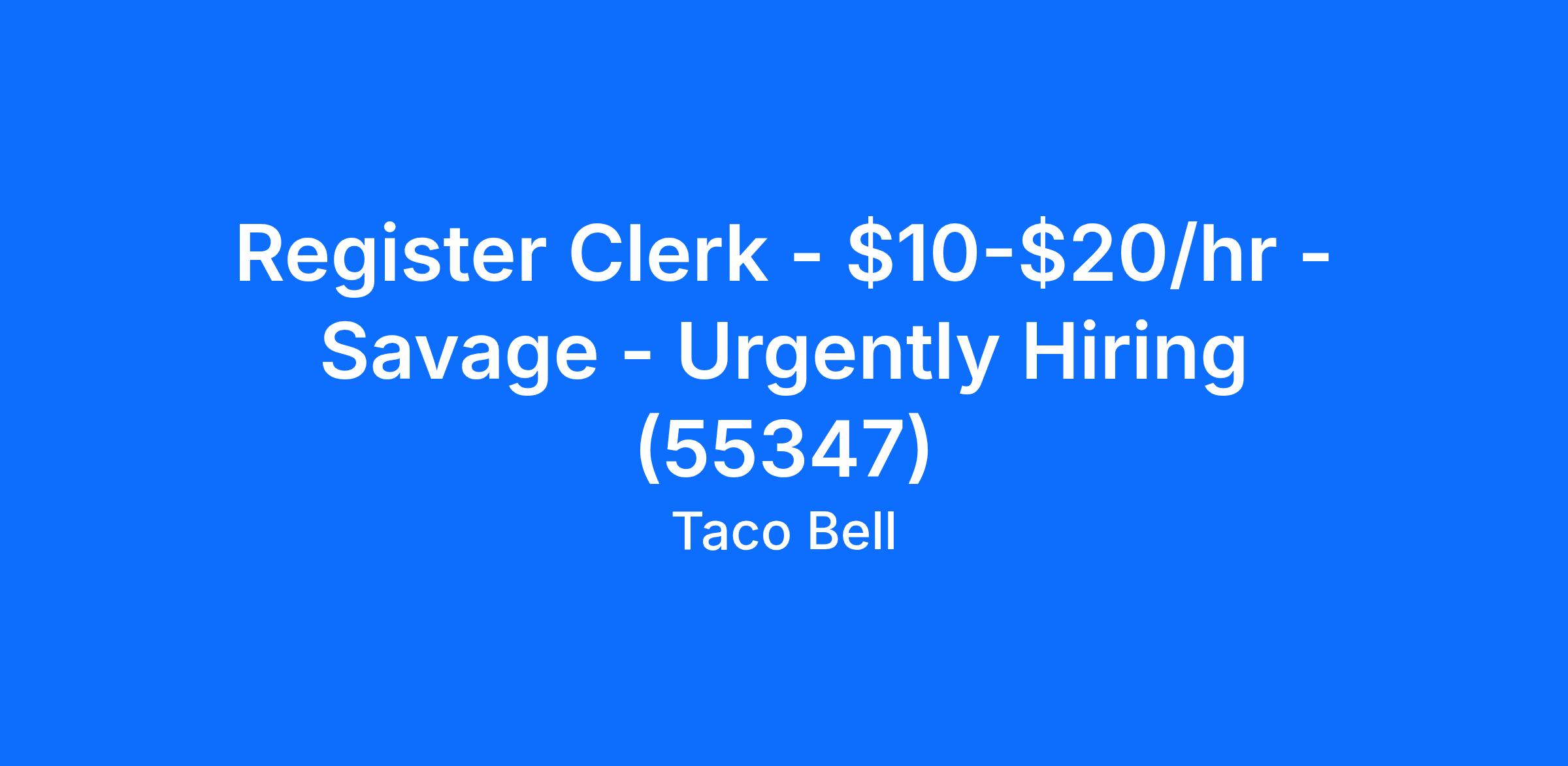 Register Clerk - $10-$20/hr - Savage - Urgently Hiring (55347)