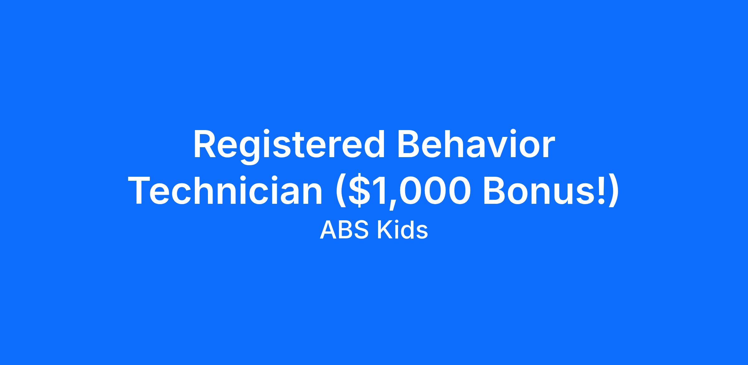 Registered Behavior Technician ($1,000 Bonus!)