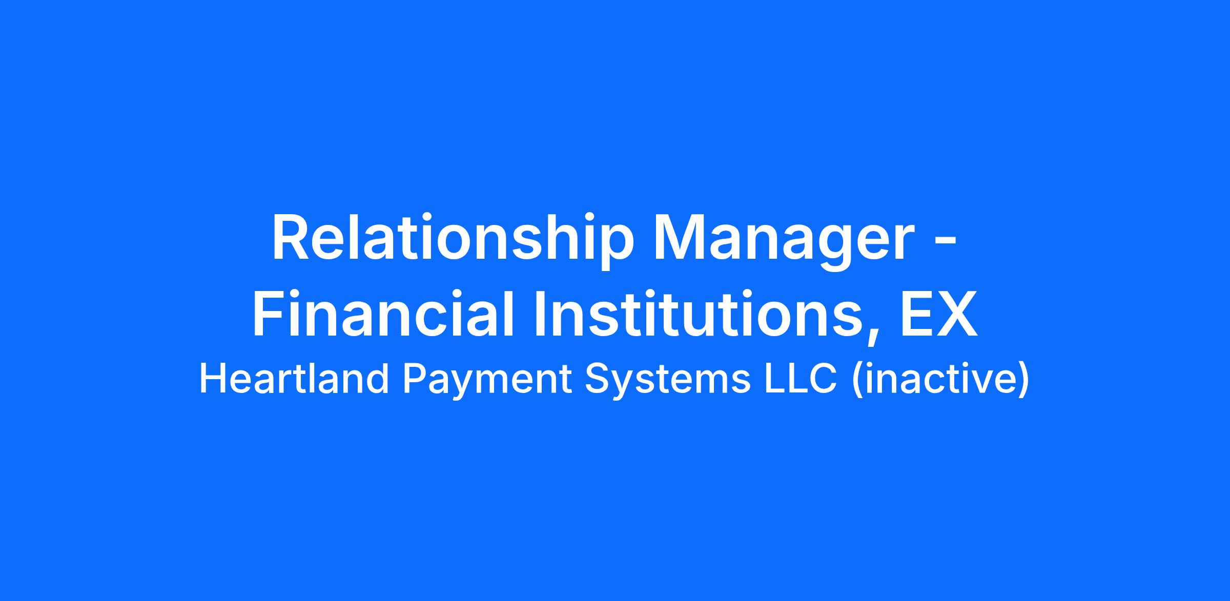 Responsible for prospecting and running Heartland Payments presentations both in person and over the phone to business owners or Financial Institution (FI) Partners to ultimately close deals within a fast sales cycle. As a Financial Institutions Relationship Manager (FI-RM) you will report to a District Manager and receive coaching from a Director. Activities include explaining our value proposition to clients via Atlas CRM and Salesforce, upselling current clients on other Heartland products and services, and maintaining regular communication with the Financial Institutions District Manager.