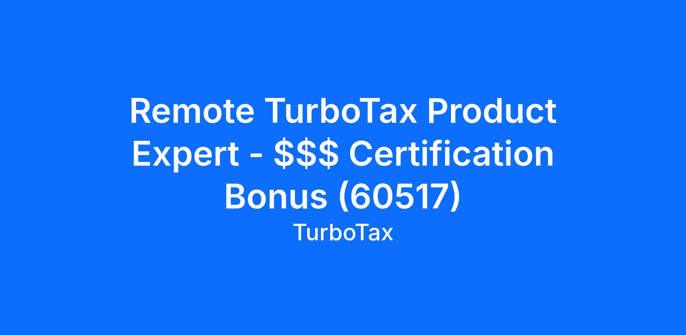 Remote TurboTax Product Expert - $$$ Certification Bonus (60517)