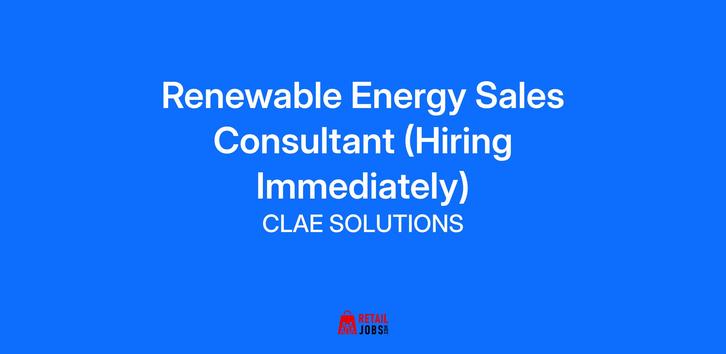 Renewable Energy Sales Consultant (Hiring Immediately)
