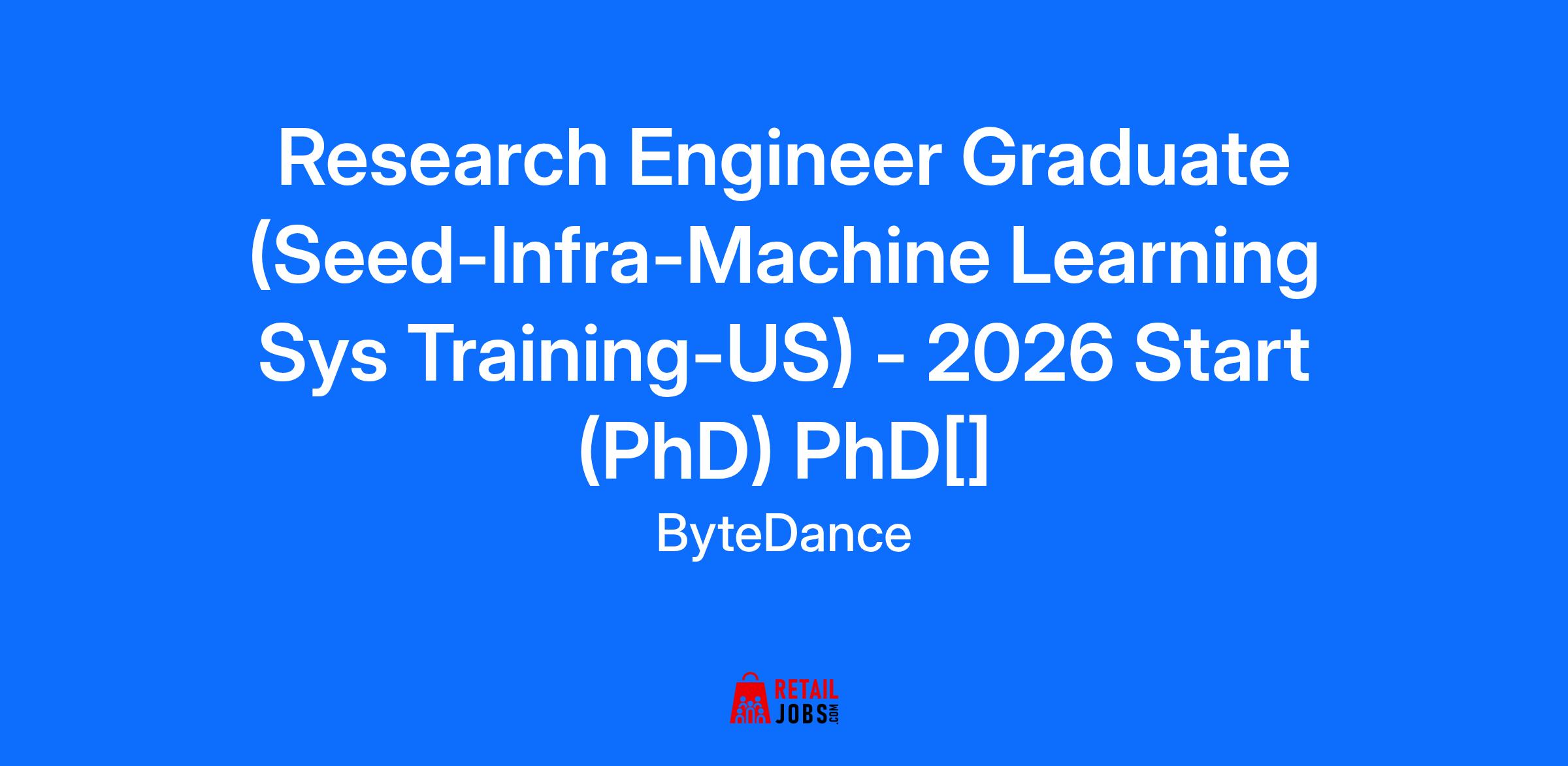 Research Engineer Graduate (Seed-Infra-Machine Learning Sys Training-US) - 2026 Start (PhD) Location: Seattle Team: Technology Employment Type: Regular Job Code: A123005 Share this listing: Responsibilities Responsible for the machine learning system development of the company's large-scale models, researching new applications and solutions of related technologies in areas such as search, recommendation, advertising, content creation, conversation, and customer service, meeting the growing demand for intelligent interaction from users, and comprehensively improving users' lifestyles and communication methods in the future world. Design and development of the architecture of large-scale machine learning systems, solving technical difficulties such as high concurrency, high reliability, and high scalability of the system. Covering various sub-directions of machine learning system, including resource scheduling, model training, model inference, data management, and workflow orchestration. Research and introduction of advanced technologies in machine learning systems, such as the latest hardware architecture, heterogeneous computing systems, and compiler-based optimization technologies. Work closely with the algorithm teams to optimize the algorithm and system jointly. QualificationsMinimum Qualifications Final year or recent PhD graduate with a background in Computer Science, related technical field or equivalent industrial research experience Must obtain work authorization in the country of employment at the time of hire, and maintain ongoing work authorization during employment Excellent coding ability, solid foundation in data structures and basic algorithms, proficient in C/C++ or Python; winners of ACM/ICPC, NOI/IOI and other competitions are preferred Familiar with at least one mainstream machine learning framework (TensorFlow/PyTorch/Jax) Master the principles of distributed systems, and participated in the design, development, and maintenance of large-scale distributed systems Strong sense of responsibility, good learning ability, communication ability, and self-motivation Good communication and collaboration skills, able to explore new technologies with the team and promote technological progress Preferred Qualifications Prior experience in large-scale projects or papers with great influence in the field of large models Familiar with NLP, CV-related algorithms, and technologies, and experienced in large model training and RL algorithms Experience in one of the following fields: CUDA, RDMA, AI Infrastructure, HW/SW Co-Design, High-Performance Computing (cutlass, NCCL), ML Hardware Architecture (GPU, Accelerators, Networking), ML for System, and Distributed Storage Demonstrated a related technical experience from previous internship, work experience, coding competitions, or publications Curiosity towards new technologies and entrepreneurship High levels of creativity and quick problem-solving capabilities Job Information The base salary range for this position in the selected city is $129,960 - $246,240 annually. Compensation may vary outside of this range depending on a number of factors, including a candidate’s qualifications, skills, competencies and experience, and location. Base pay is one part of the Total Package that is provided to compensate and recognize employees for their work, and this role may be eligible for additional discretionary bonuses/incentives, and restricted stock units. Benefits may vary depending on the nature of employment and the country work location. Employees have day one access to medical, dental, and vision insurance, a 401(k) savings plan with company match, paid parental leave, short-term and long-term disability coverage, life insurance, wellbeing benefits, among others. Employees also receive 10 paid holidays per year, 10 paid sick days per year and 17 days of Paid Personal Time (prorated upon hire with increasing accruals by tenure). The Company reserves the right to modify or change these benefits programs at any time, with or without notice. Additional Information For Los Angeles County (unincorporated) Candidates: Qualified applicants with arrest or conviction records will be considered for employment in accordance with all federal, state, and local laws including the Los Angeles County Fair Chance Ordinance for Employers and the California Fair Chance Act. Our company believes that criminal history may have a direct, adverse and negative relationship on the following job duties, potentially resulting in the withdrawal of the conditional offer of employment: 1. Interacting and occasionally having unsupervised contact with internal/external clients and/or colleagues; 2. Appropriately handling and managing confidential information including proprietary and trade secret information and access to information technology systems; and 3. Exercising sound judgment. About Doubao (Seed) Founded in 2023, the ByteDance Doubao (Seed) Team, is dedicated to pioneering advanced AI foundation models. Our goal is to lead in cutting-edge research and drive technological and societal advancements. With a strong commitment to AI, our research areas span deep learning, reinforcement learning, Language, Vision, Audio, AI Infra and AI Safety. Our team has labs and research positions across China, Singapore, and the US. Why Join ByteDance Inspiring creativity is at the core of ByteDance's mission. Our innovative products are built to help people authentically express themselves, discover and connect – and our global, diverse teams make that possible. Together, we create value for our communities, inspire creativity and enrich life - a mission we work towards every day. As ByteDancers, we strive to do great things with great people. We lead with curiosity, humility, and a desire to make impact in a rapidly growing tech company. By constantly iterating and fostering an "Always Day 1" mindset, we achieve meaningful breakthroughs for ourselves, our Company, and our us