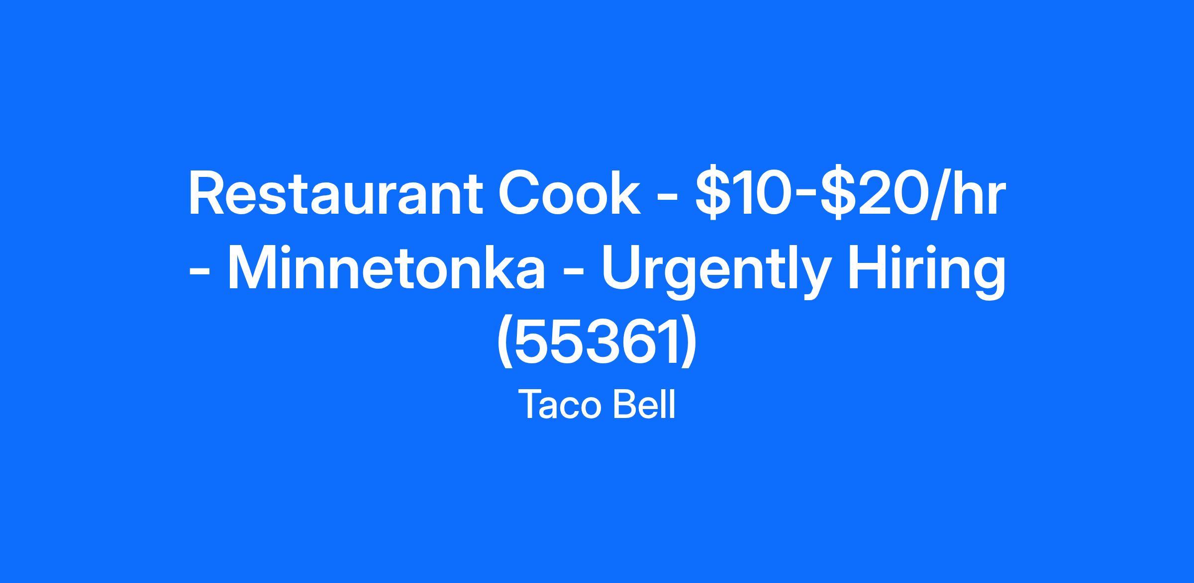 Restaurant Cook - $10-$20/hr - Minnetonka - Urgently Hiring (55361)