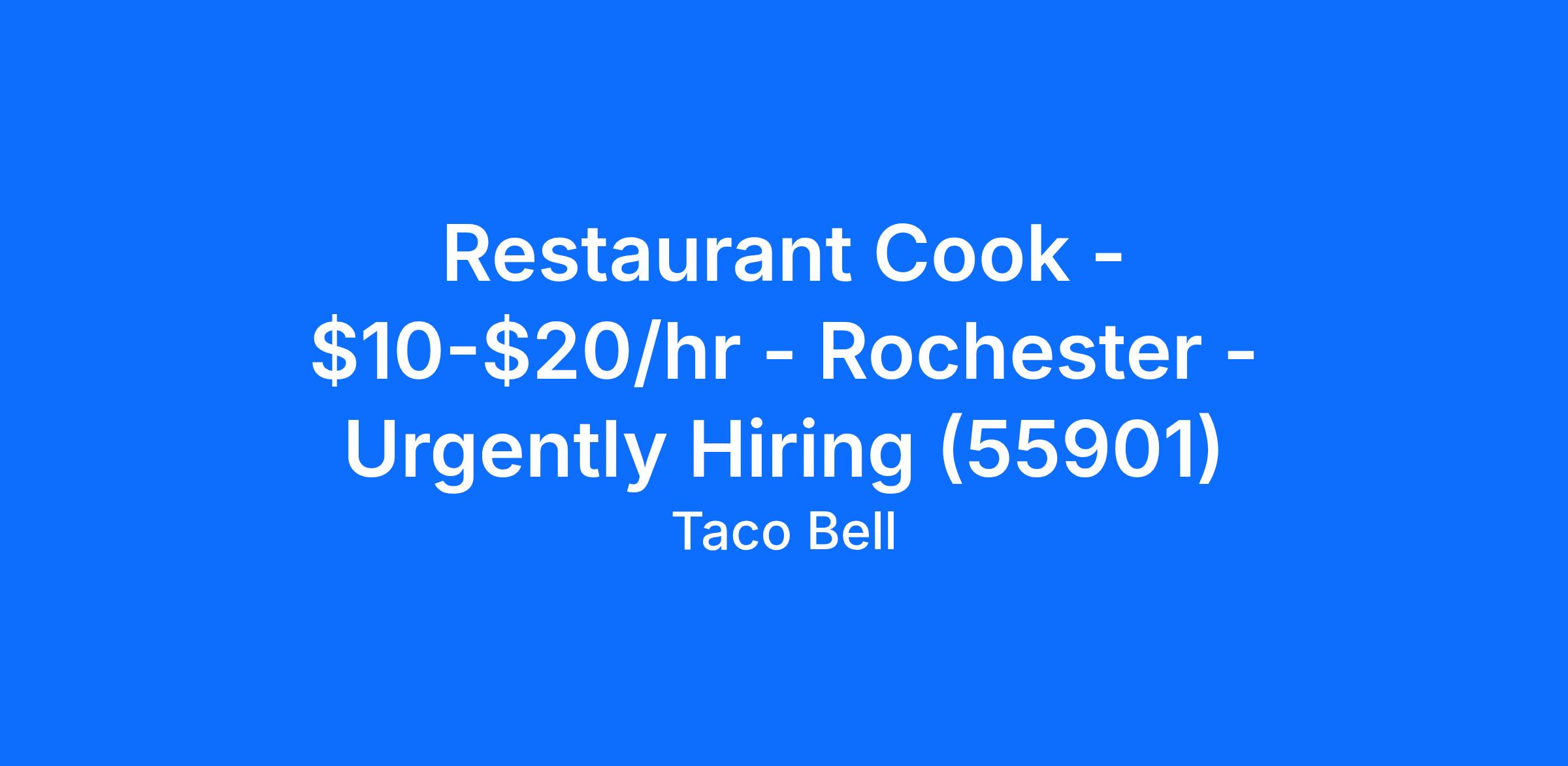 Restaurant Cook - $10-$20/hr - Rochester - Urgently Hiring (55901)