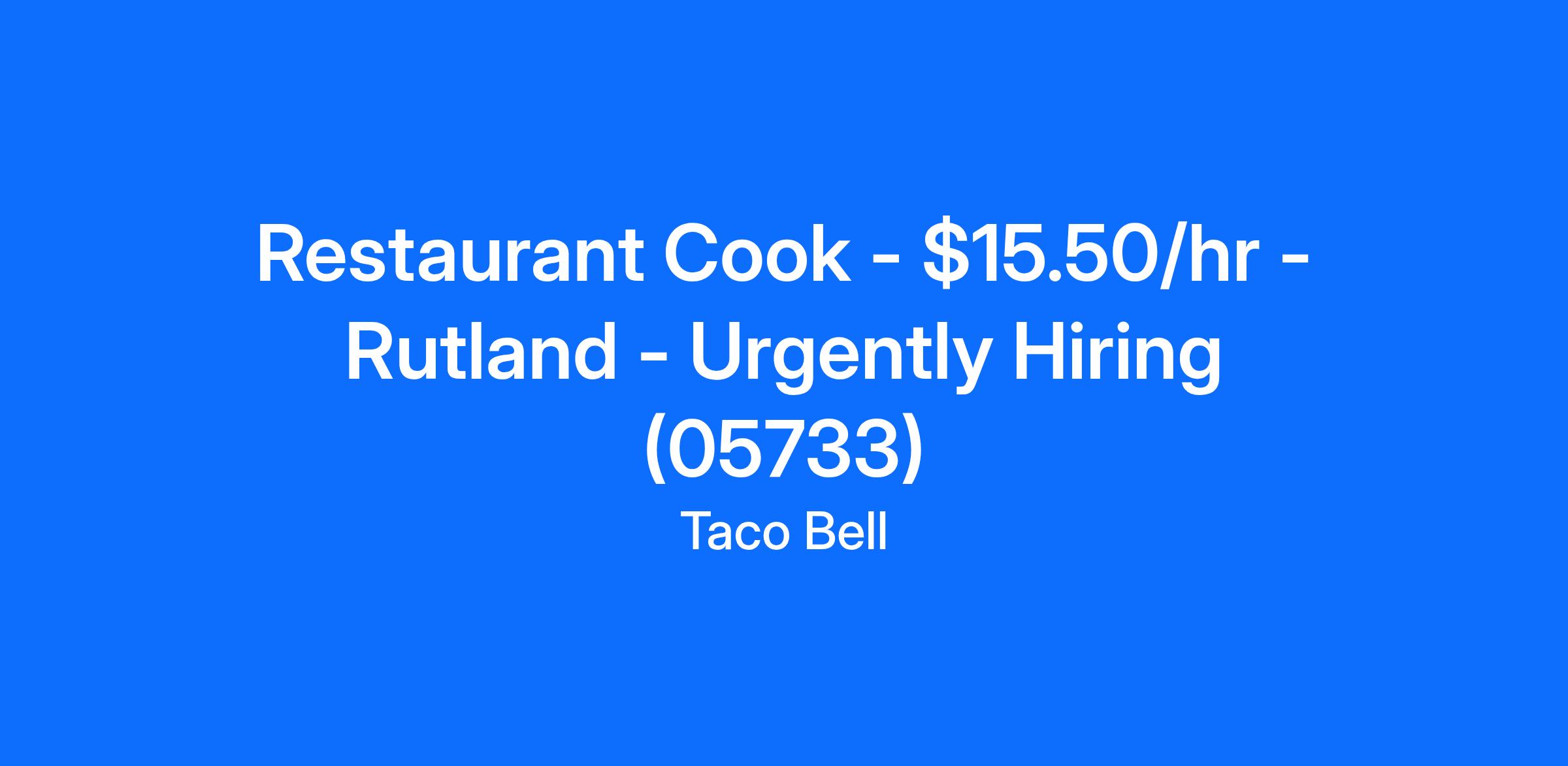 Restaurant Cook - $15.50/hr - Rutland - Urgently Hiring (05733)