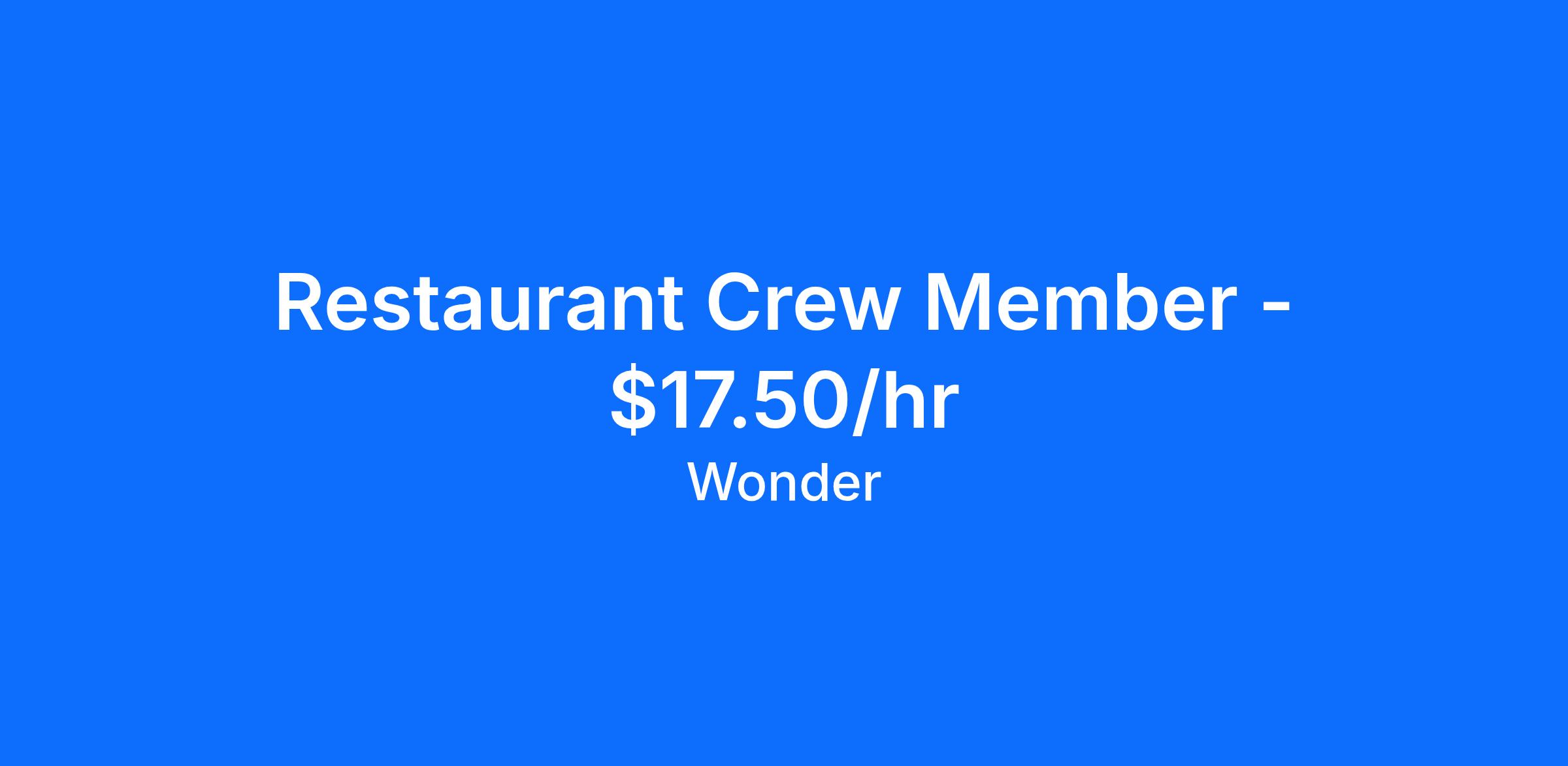 At Wonder, we make world-class food accessible to everyone. As a Team Member, you'll help bring menus from Michelin-starred and celebrity chefs to life while creating an inviting, positive experience for every guest. Whether you're looking to grow your career, learn new skills, or join a fast-paced, fun team; this is your place.