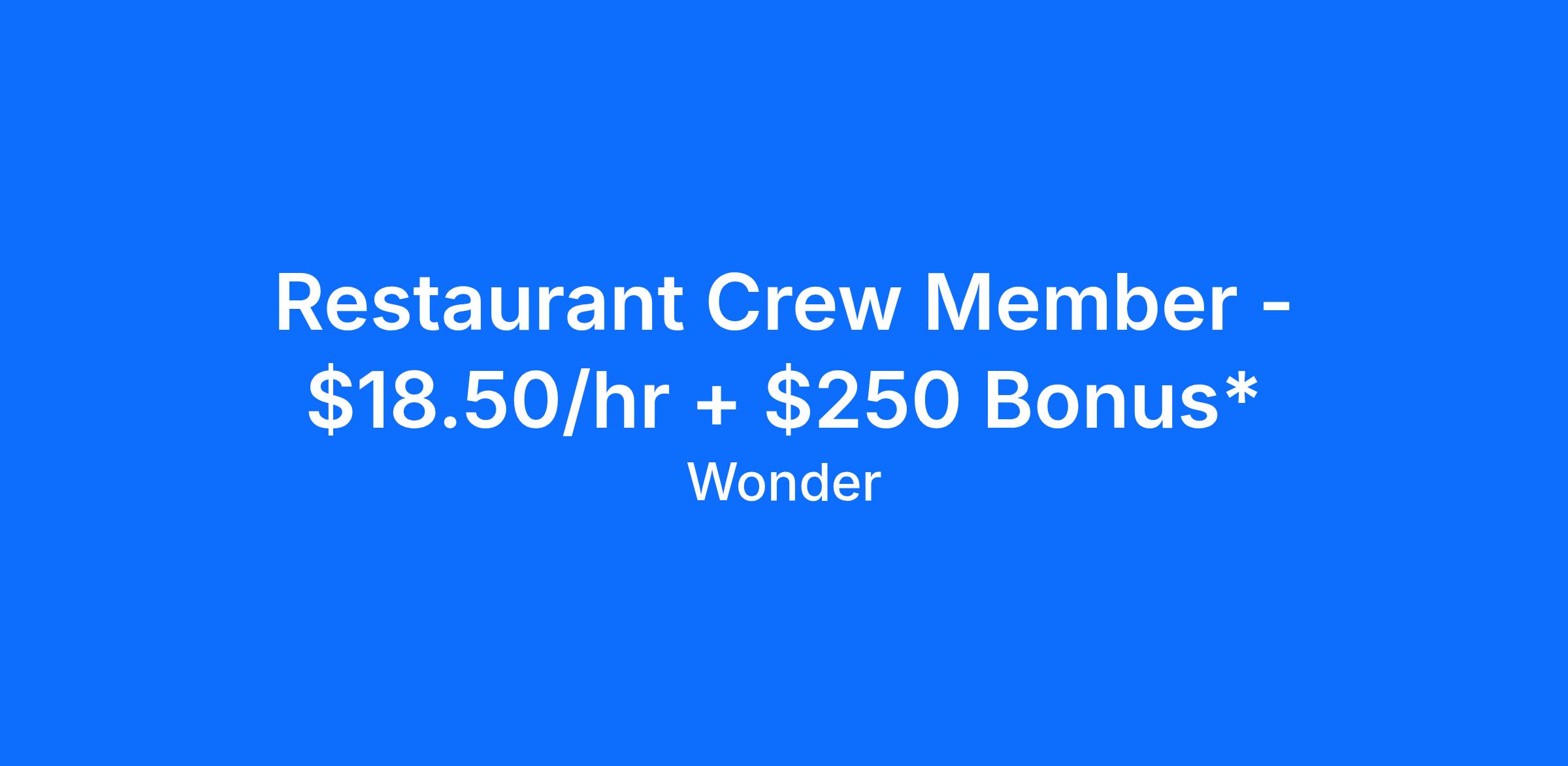 At Wonder, we make world-class food accessible to everyone. As a Team Member, you'll help bring menus from Michelin-starred and celebrity chefs to life while creating an inviting, positive experience for every guest. Whether you're looking to grow your career, learn new skills, or join a fast-paced, fun team; this is your place.