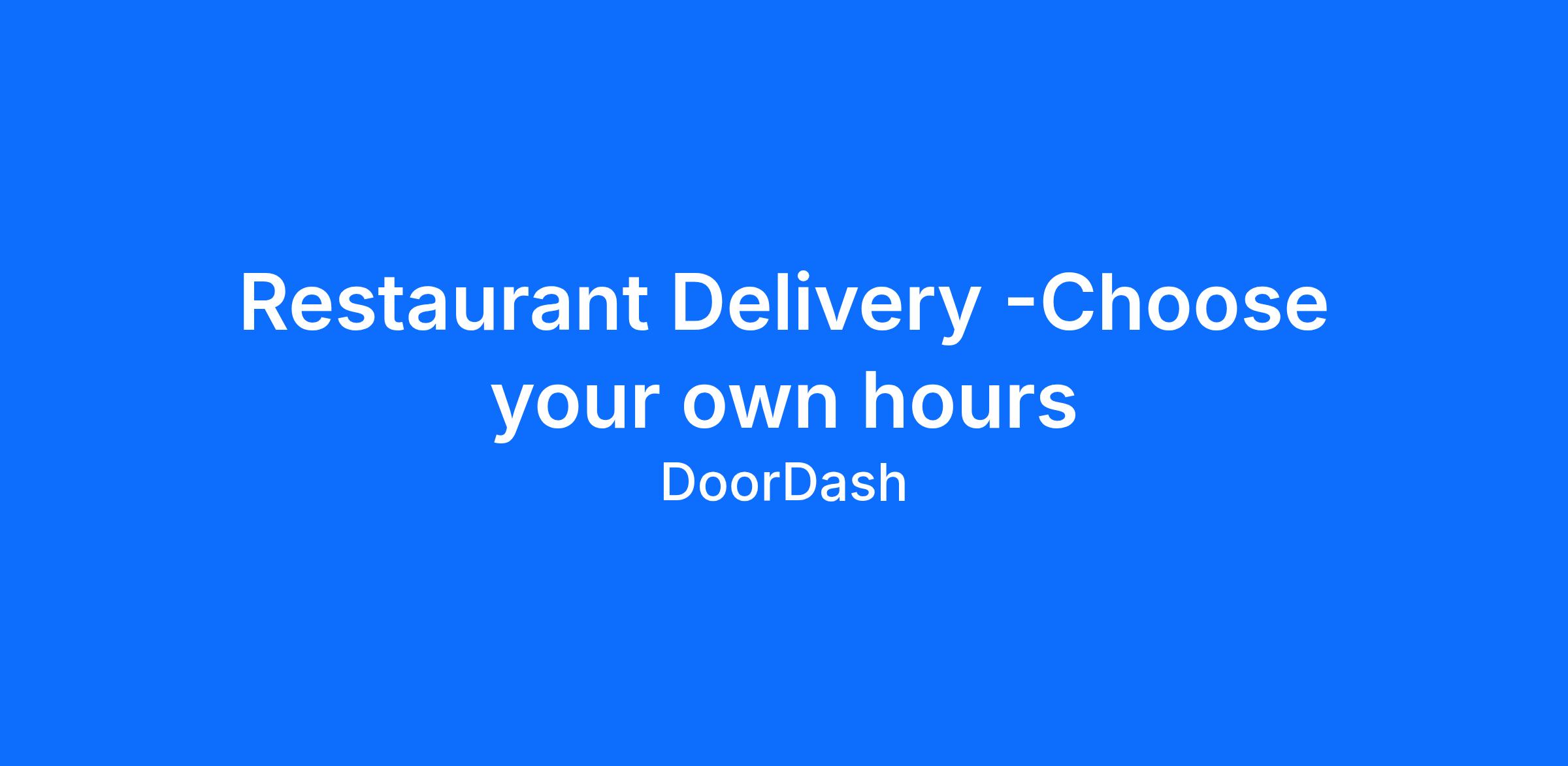 Why Deliver with DoorDash?DoorDash is the #1 category leader in food delivery, food pickup, and convenience store delivery in the US, trusted by millions of customers every day. As a Dasher, you'll stay busy with a variety of earnings opportunities and can work when it works for you. Whether you're looking for a side hustle or a full-time gig, delivering with DoorDash gives you the opportunity to earn extra cash on your terms.Multiple ways to earn: Whether you're delivering meals, groceries, or retail orders, DoorDash offers diverse earning opportunities so you can maximize your time.Total flexibility: Dash when it works for you. Set your own hours and work as much—or as little—as you want.Know how much you'll make: Clear and concise pay model lets you know the minimum amount you will make before accepting any offer.Instant cash flow: Get paid the same day you dash with DoorDash Crimson*. No deposit fees, no waiting.Quick and easy start: Sign up in minutes and get on the road fast.**Simple Process: Just pick up, drop off, and cash out. Payday is in your back pocket.Basic Requirements18+ years old*** (21+ to deliver alcohol)Any car, scooter, or bicycle (in select cities)Driver's license numberSocial security number (only in the US)Consistent access to a smartphoneHow to Sign UpClick “Sign UpApply Now” and complete the sign up processDownload the DoorDash Dasher app and go*Subject to eligibility requirements and successful ID verification. The DoorDash Crimson Deposit Account is established by Starion Bank, Member FDIC. The DoorDash Crimson Visa® Debit Card is issued by Starion Bank.**Subject to eligibility..***Must be 19+ in Arizona, California, Colorado, Delaware, Florida, Georgia, Idaho, Kentucky, Montana, New Jersey, New Mexico, Texas, Utah, and West VirginiaAdditional informationDashing with DoorDash is a great earnings opportunity for anyone looking for part-time, seasonal, flexible, weekend, after-school, temporary, steady delivery gig. Deliver with DoorDash and earn extra cash while being your own boss. Dash when it works for you. Sign up today.