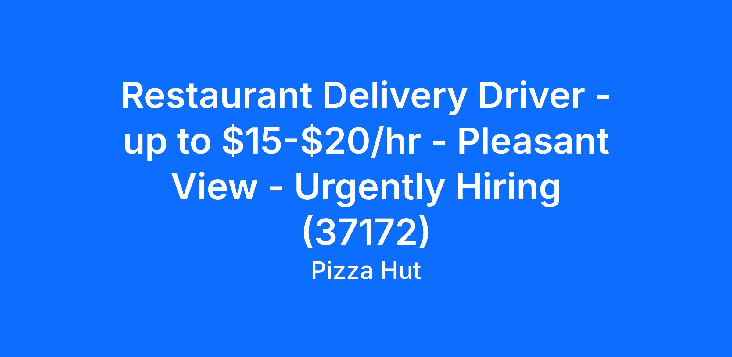 Pizza Hut - Pleasant View is currently hiring qualified full time or part time Restaurant Delivery Drivers at our location in Pleasant View, TN. As a Restaurant Delivery Driver, your responsibility is to safely and efficiently deliver food orders from our store location to our customers.