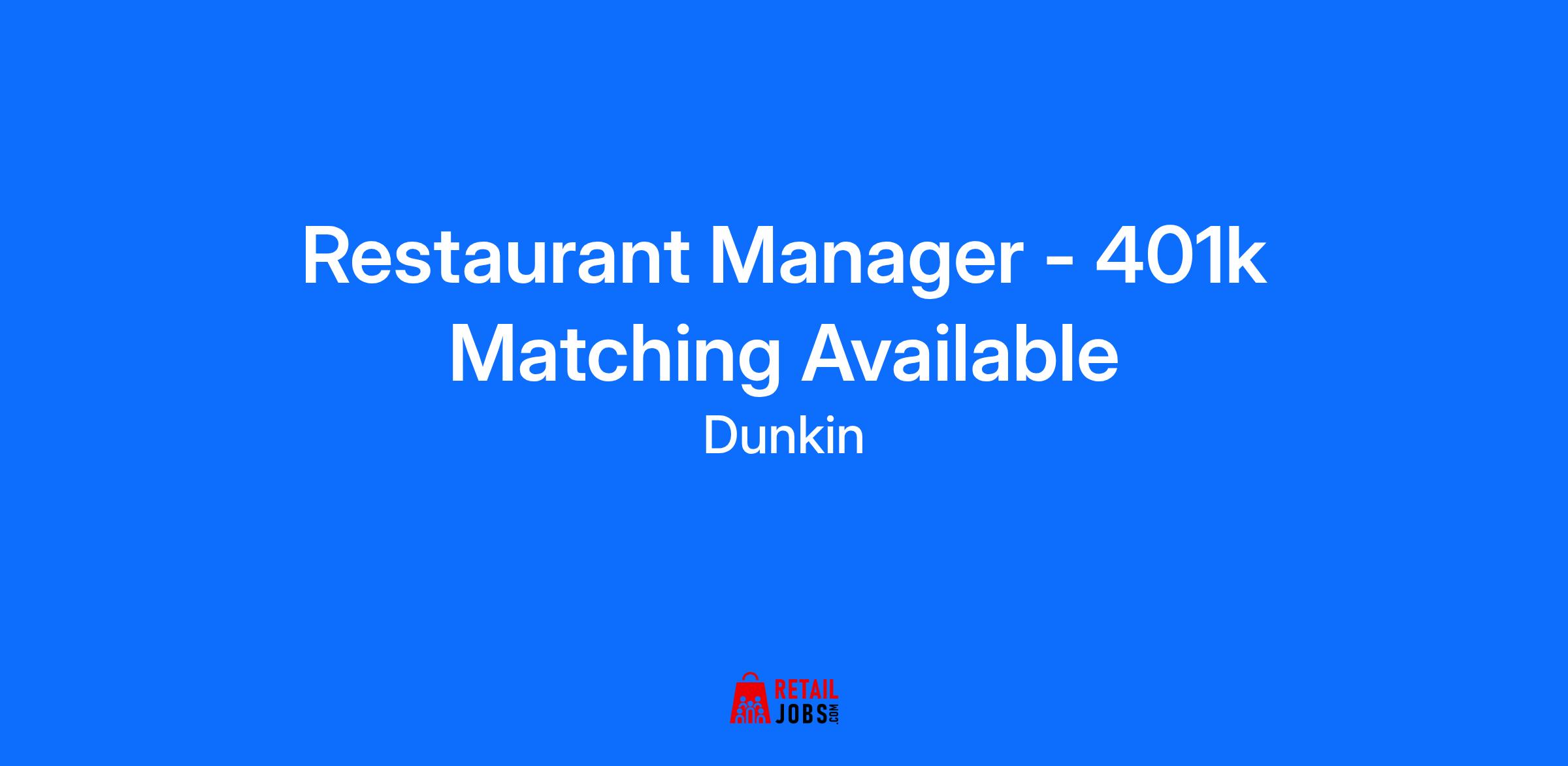 Restaurant Manager - 401k Matching Available