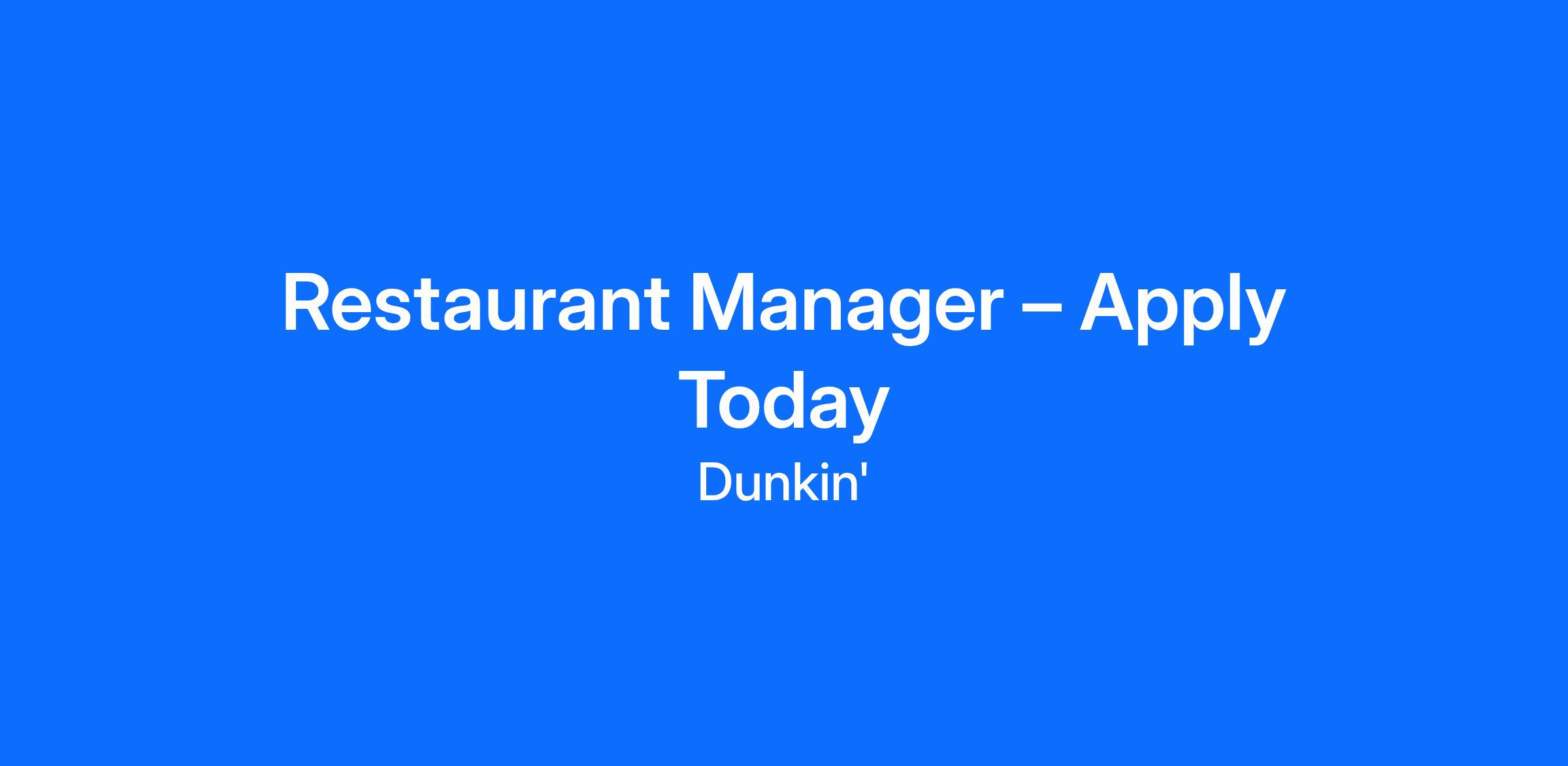 Restaurant Manager – Apply Today