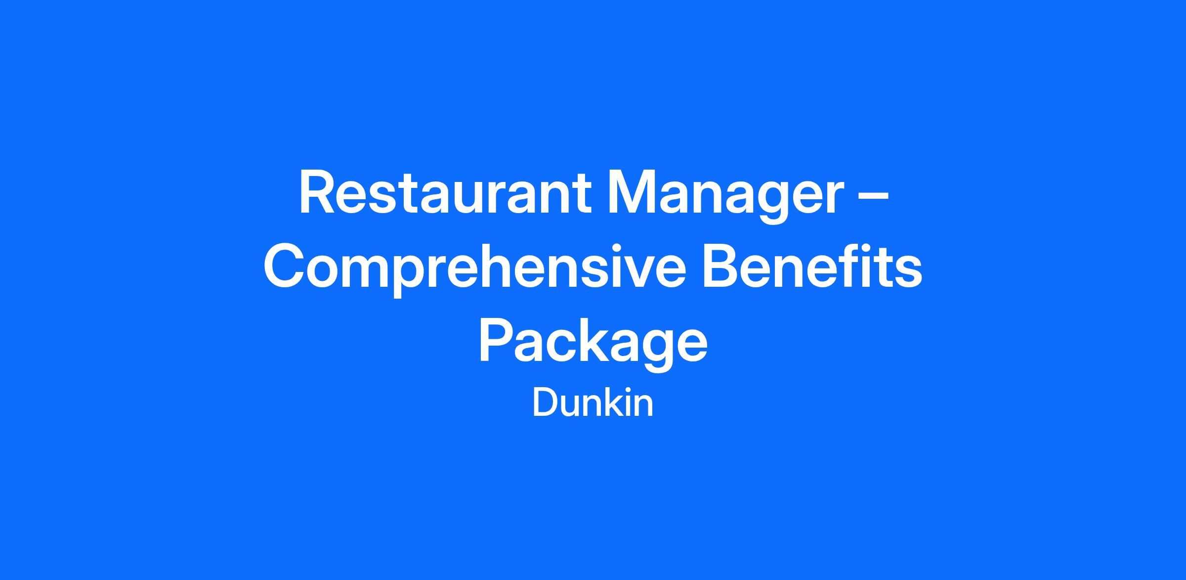 Restaurant Manager – Comprehensive Benefits Package