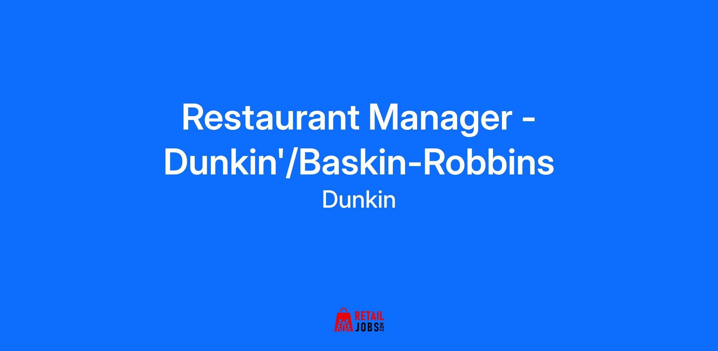 Restaurant Manager - Dunkin'/Baskin-Robbins