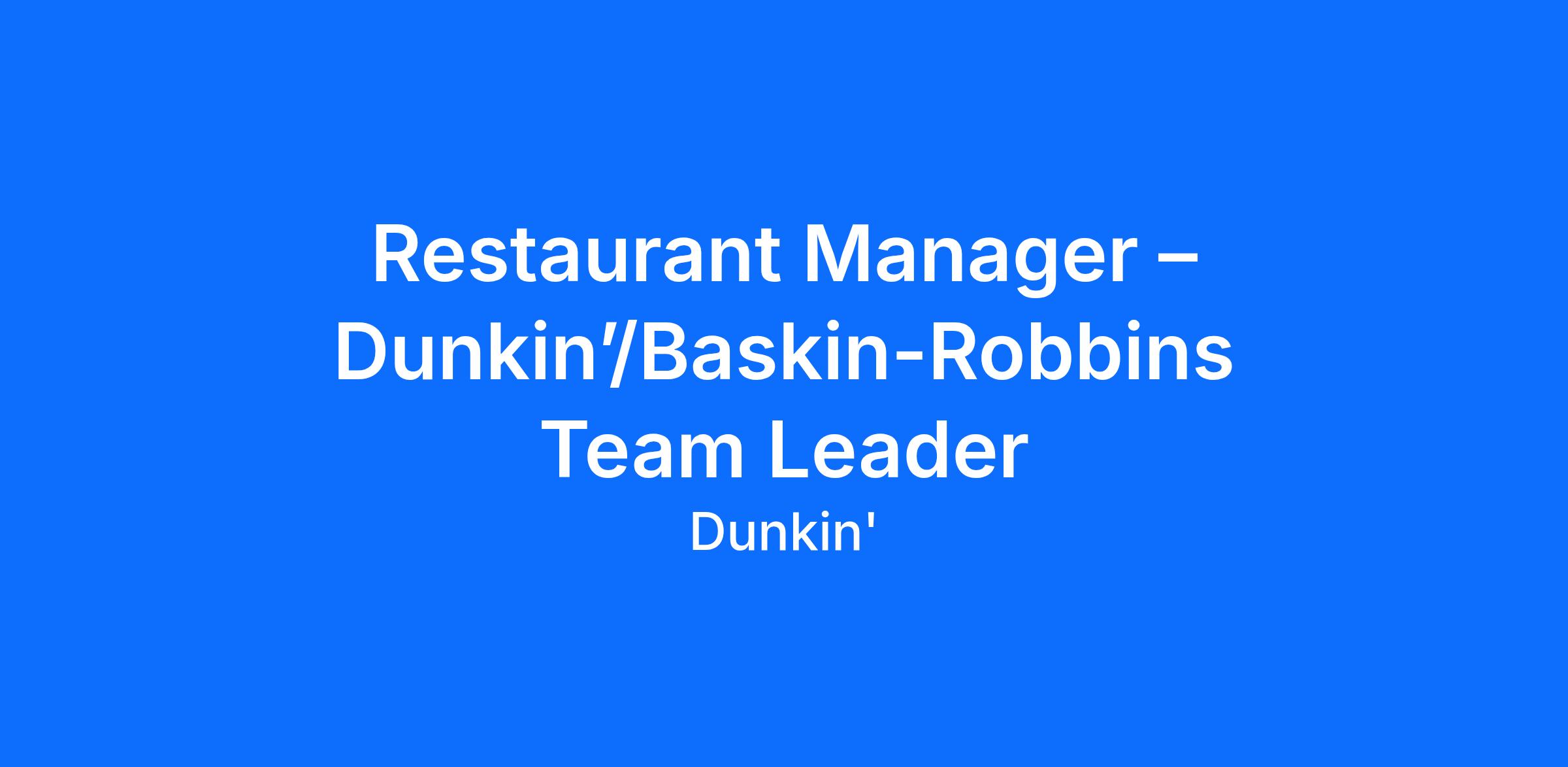 Restaurant Manager – Dunkin’/Baskin-Robbins Team Leader