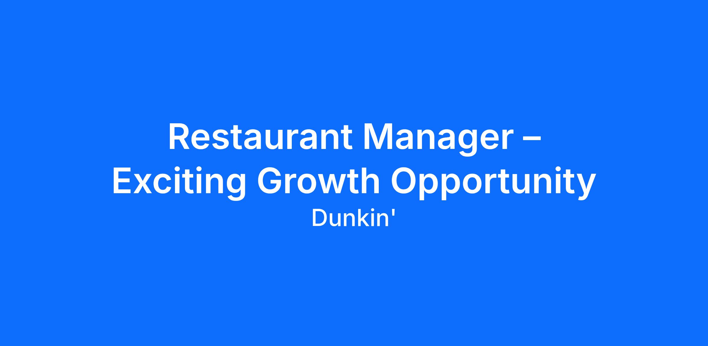 Restaurant Manager – Exciting Growth Opportunity
