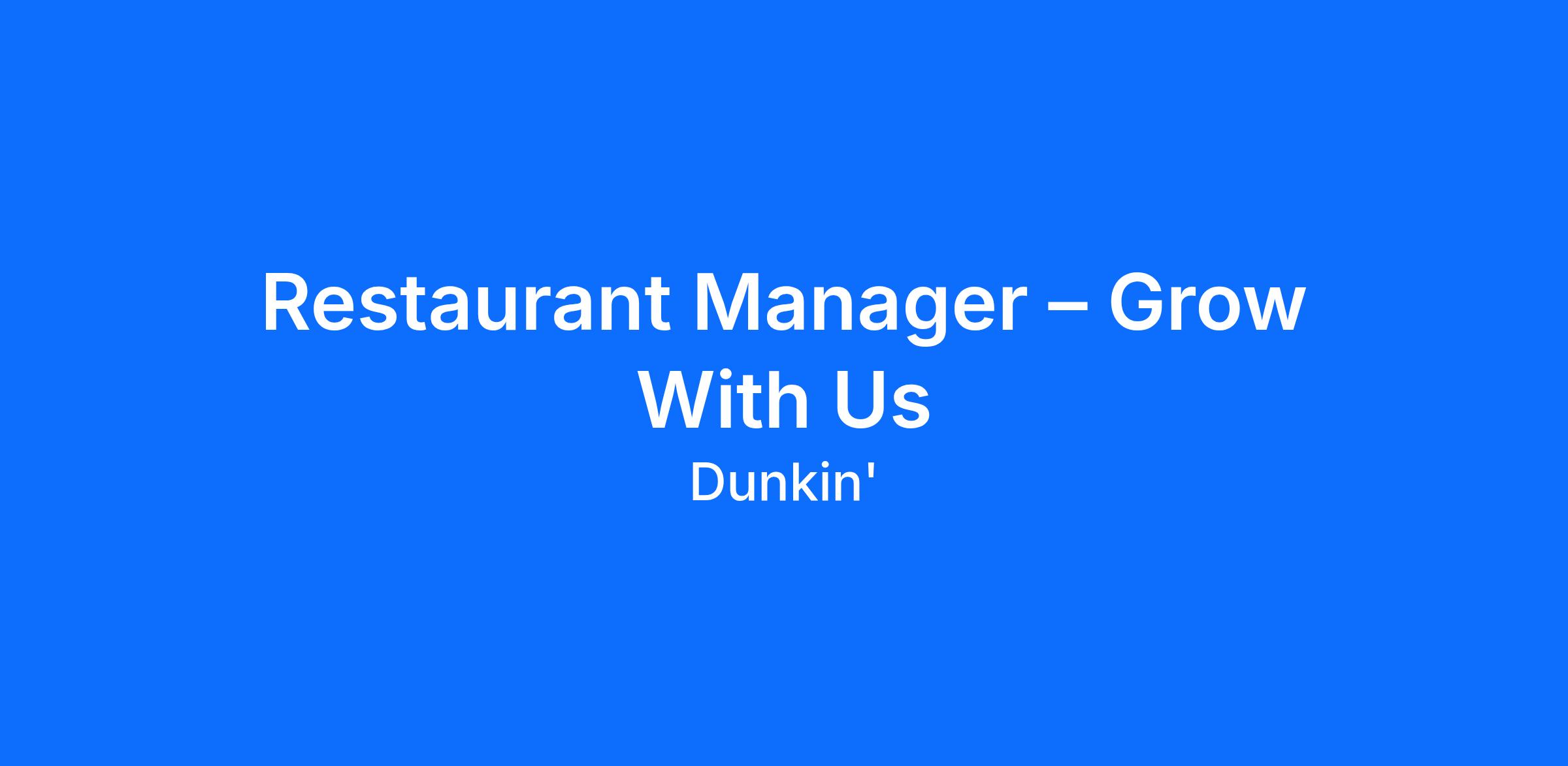 Restaurant Manager – Grow With Us