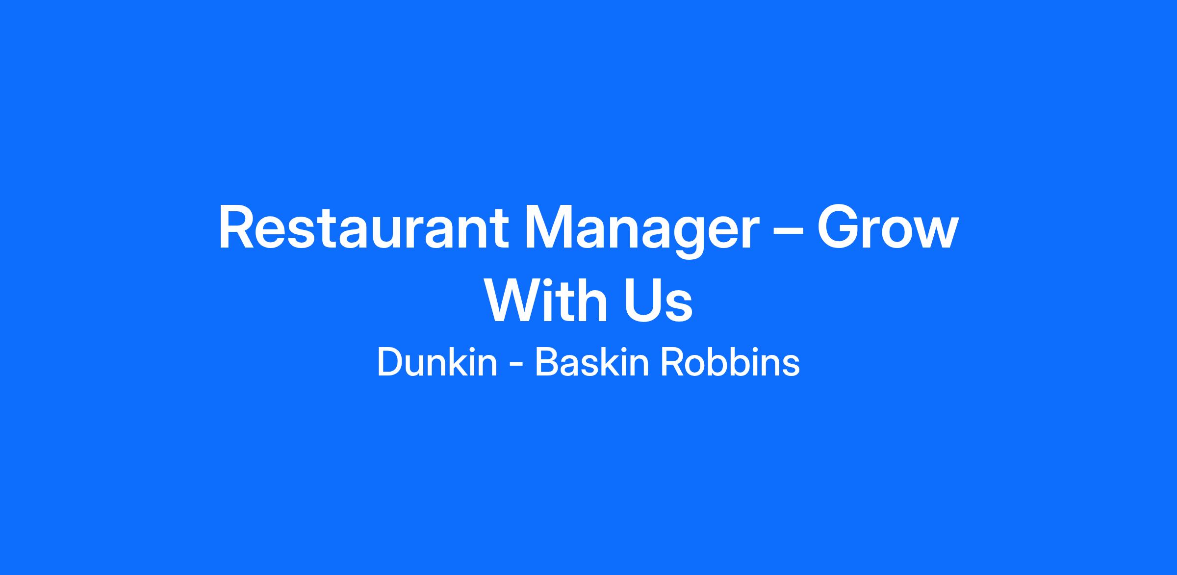 Restaurant Manager – Grow With Us