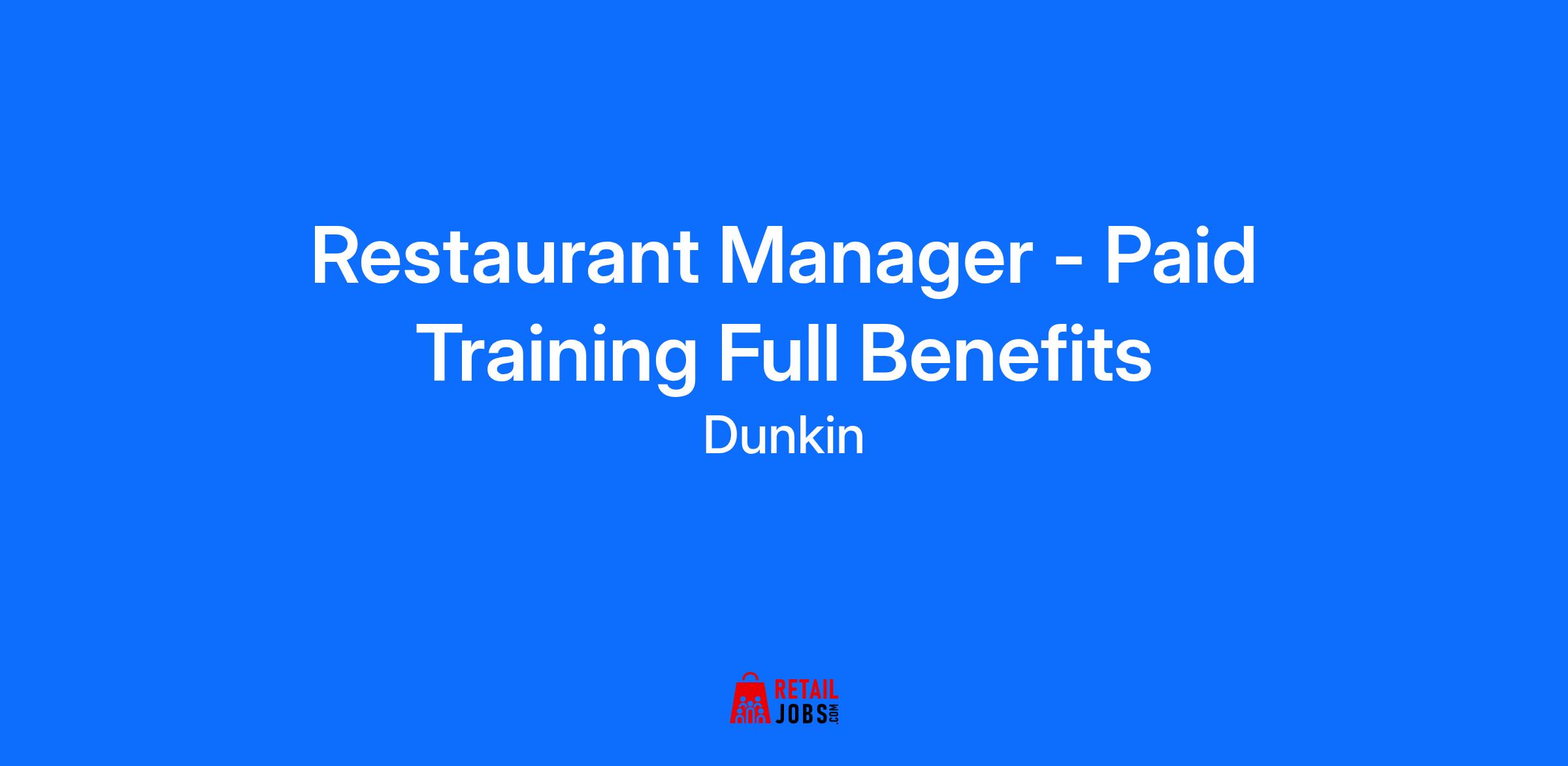 Restaurant Manager - Paid Training Full Benefits