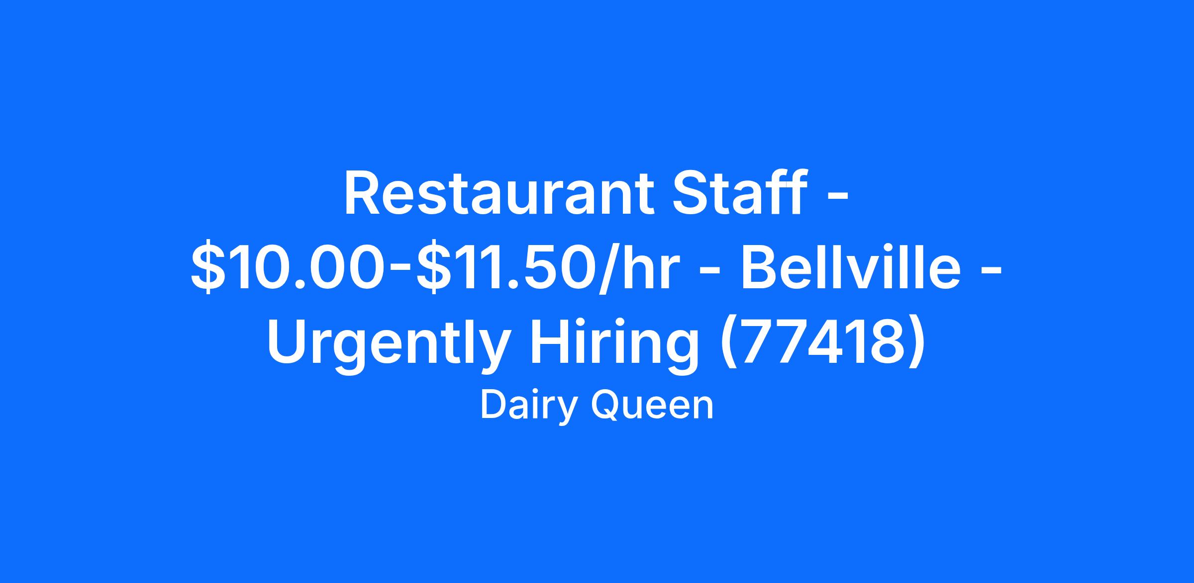 Restaurant Staff - $10.00-$11.50/hr - Bellville - Urgently Hiring (77418)
