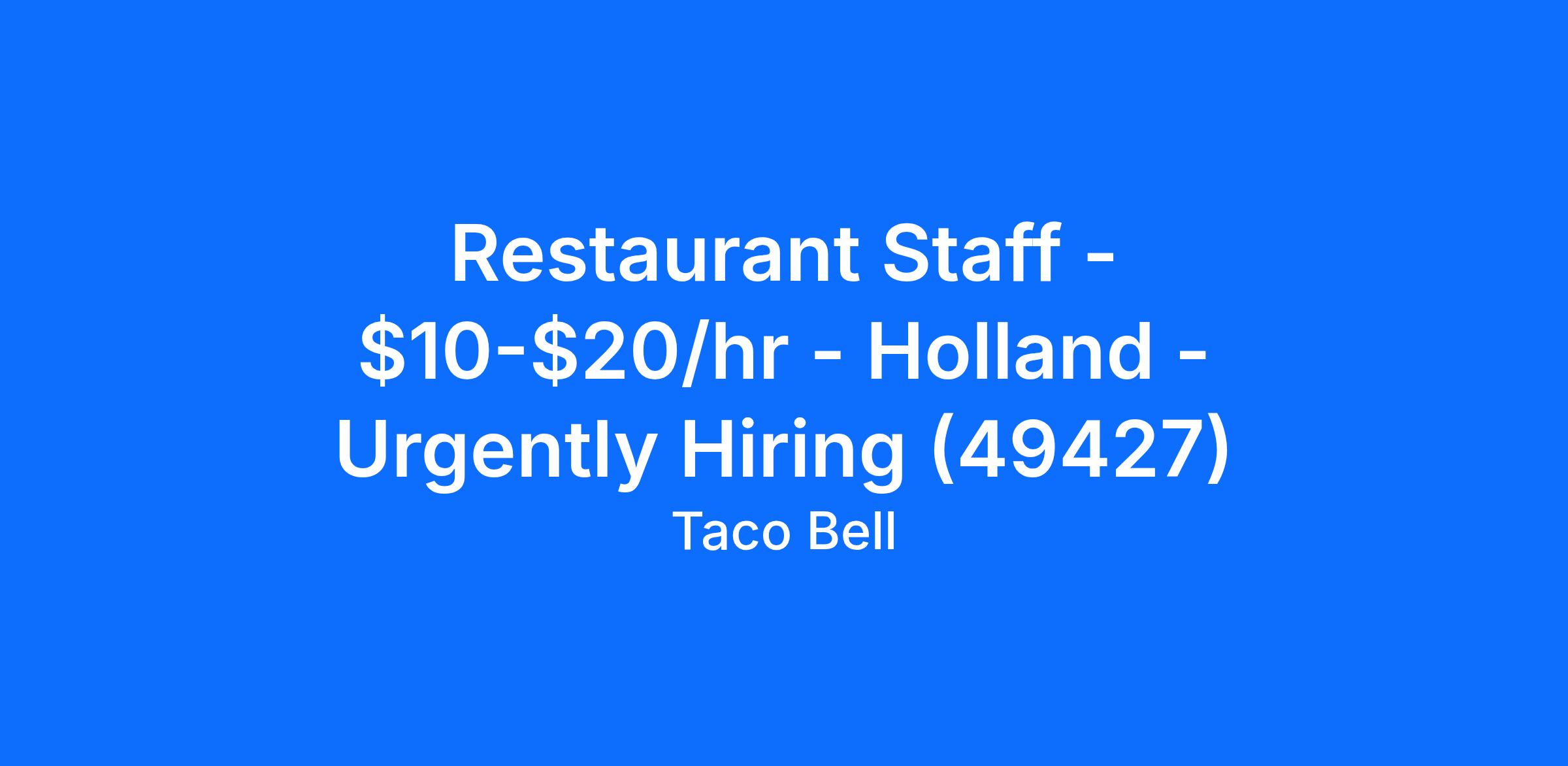 Restaurant Staff - $10-$20/hr - Holland - Urgently Hiring (49427)