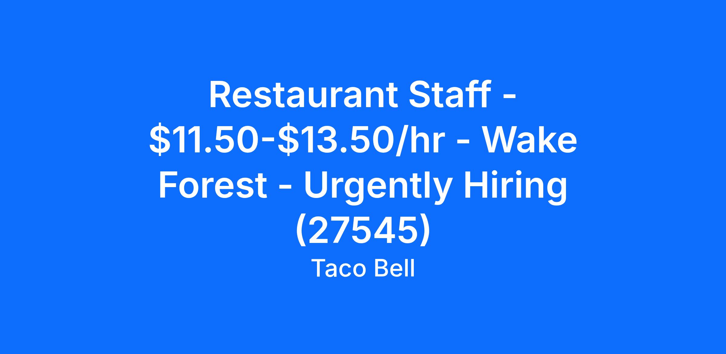 Restaurant Staff - $11.50-$13.50/hr - Wake Forest - Urgently Hiring (27545)