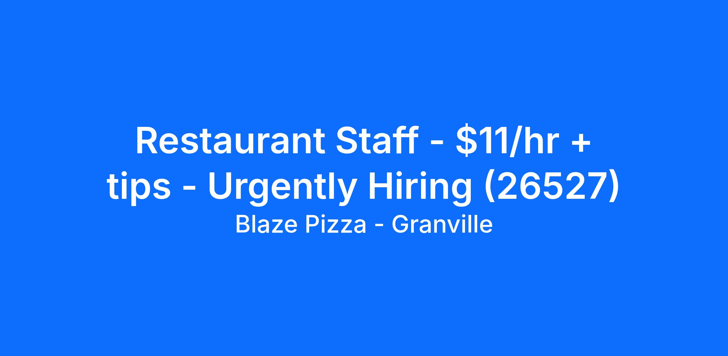 We look forward to seeing you for an interview for our full time or part time Restaurant Staff role at Blaze Pizza - Granville soon!