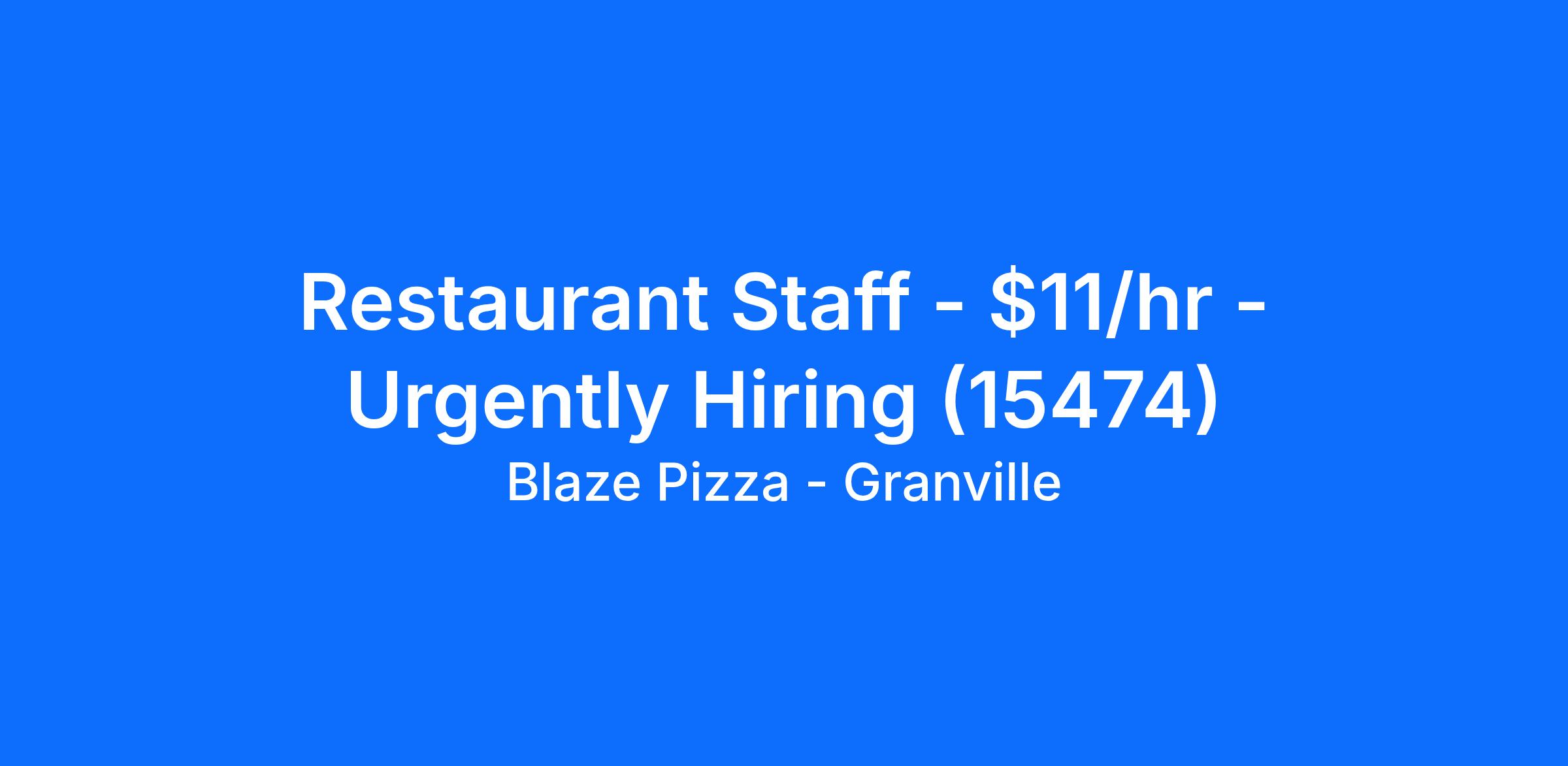 We look forward to seeing you for an interview for our full time or part time Restaurant Staff role at Blaze Pizza - Granville soon!
