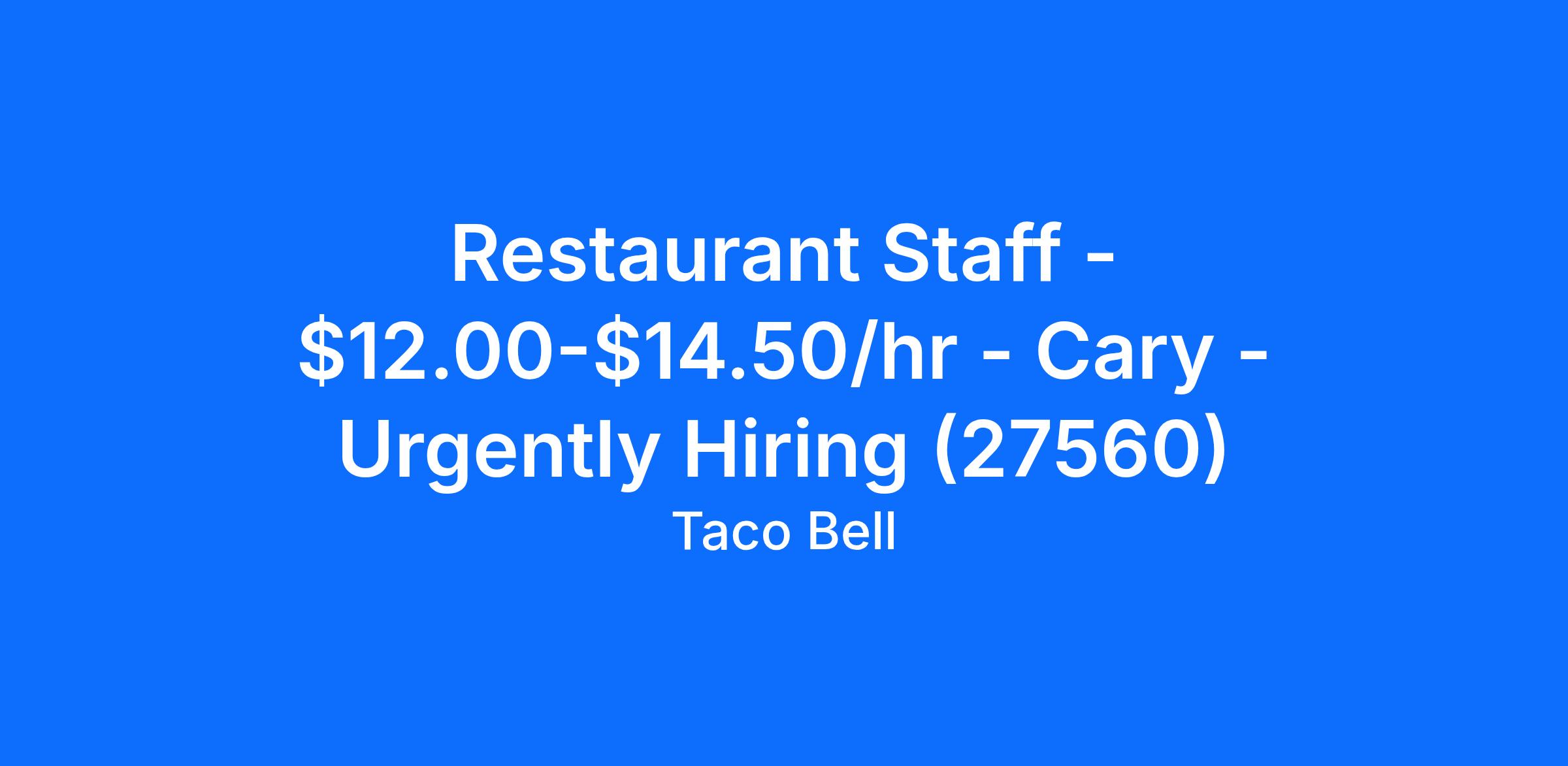 Restaurant Staff - $12.00-$14.50/hr - Cary - Urgently Hiring (27560)