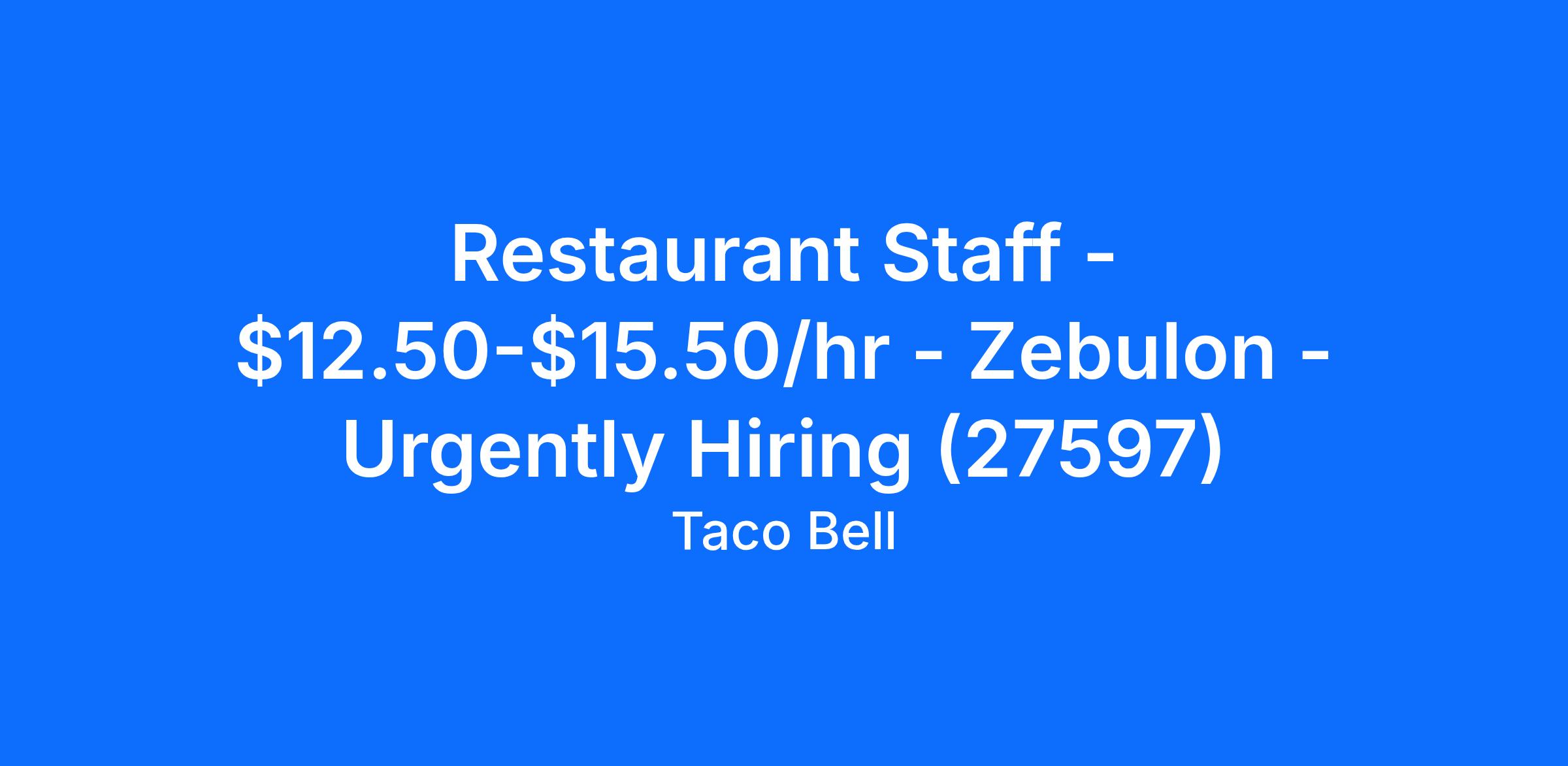 Taco Bell / KFC - Zebulon is looking for a full time or part time Restaurant Staff team member to join our team in Zebulon, NC. The Restaurant Staff team member is responsible for customer service and commitment to excellence through meeting or exceeding hospitality and service standards.