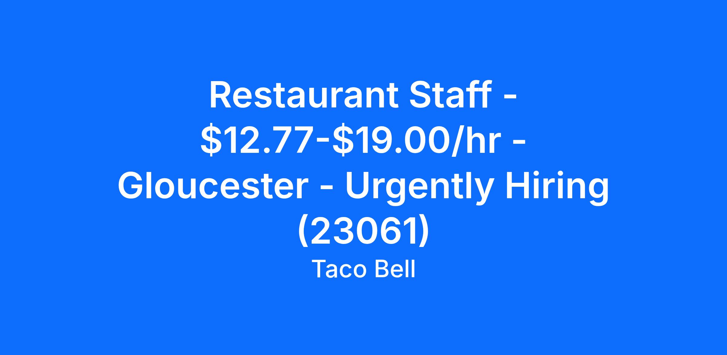 Restaurant Staff - $12.77-$19.00/hr - Gloucester - Urgently Hiring (23061)