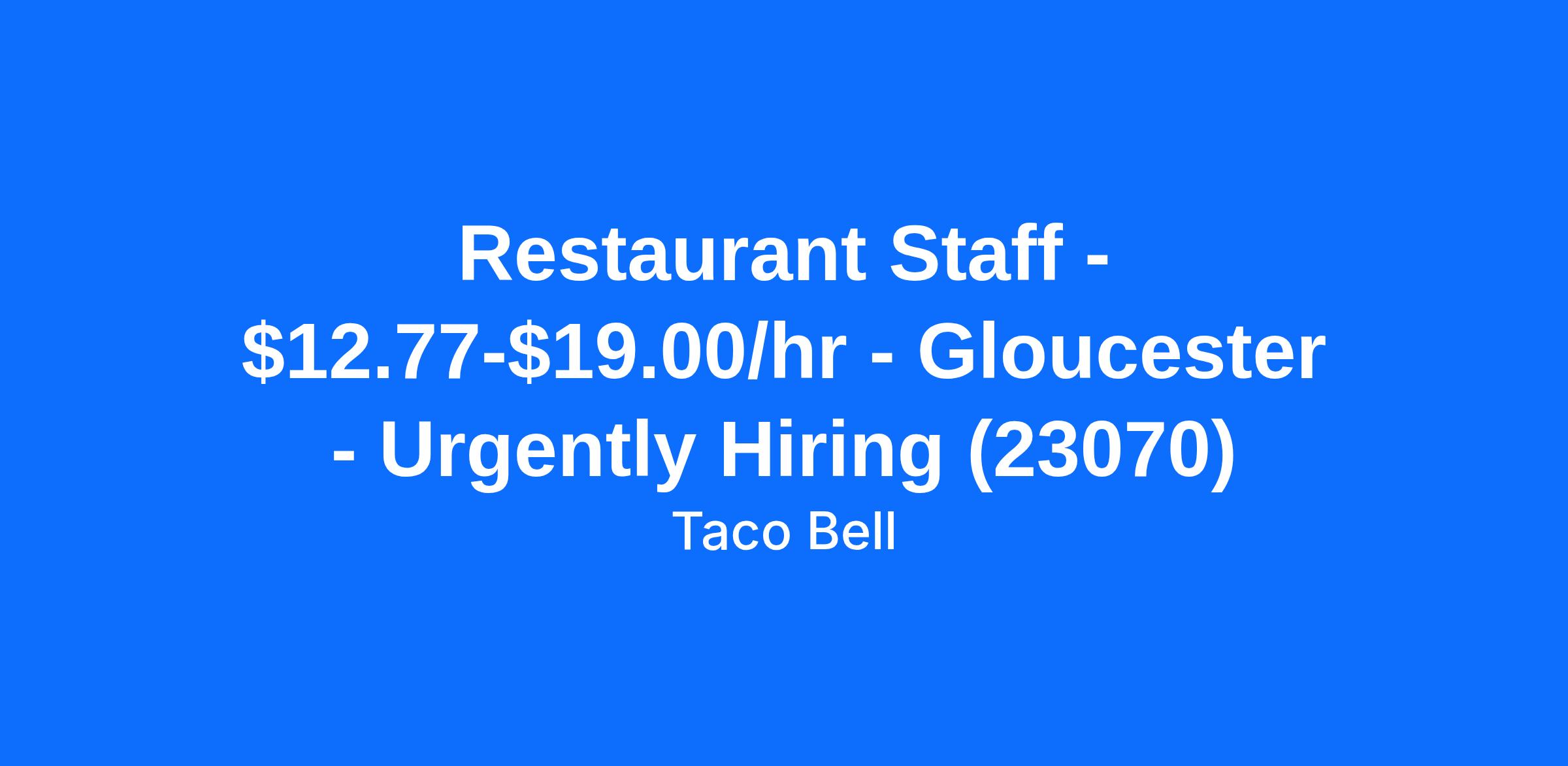 Restaurant Staff - $12.77-$19.00/hr - Gloucester - Urgently Hiring (23070)