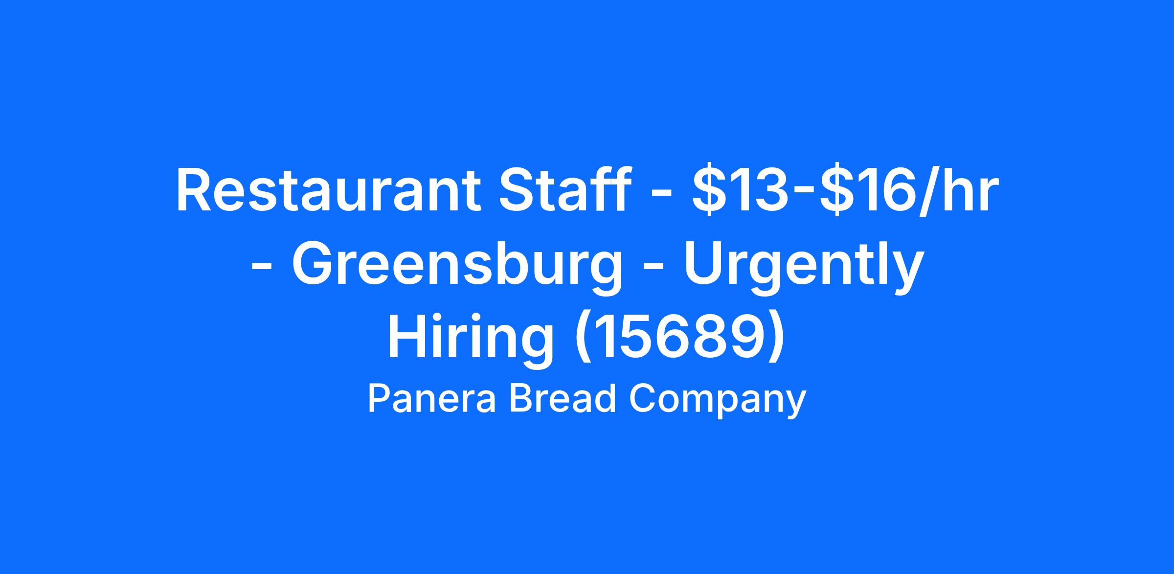 Panera Bread - Greensburg is looking for a full time or part time Restaurant Staff team member to join our team in Greensburg, PA. The Restaurant Staff team member is responsible for customer service and commitment to excellence through meeting or exceeding hospitality and service standards.